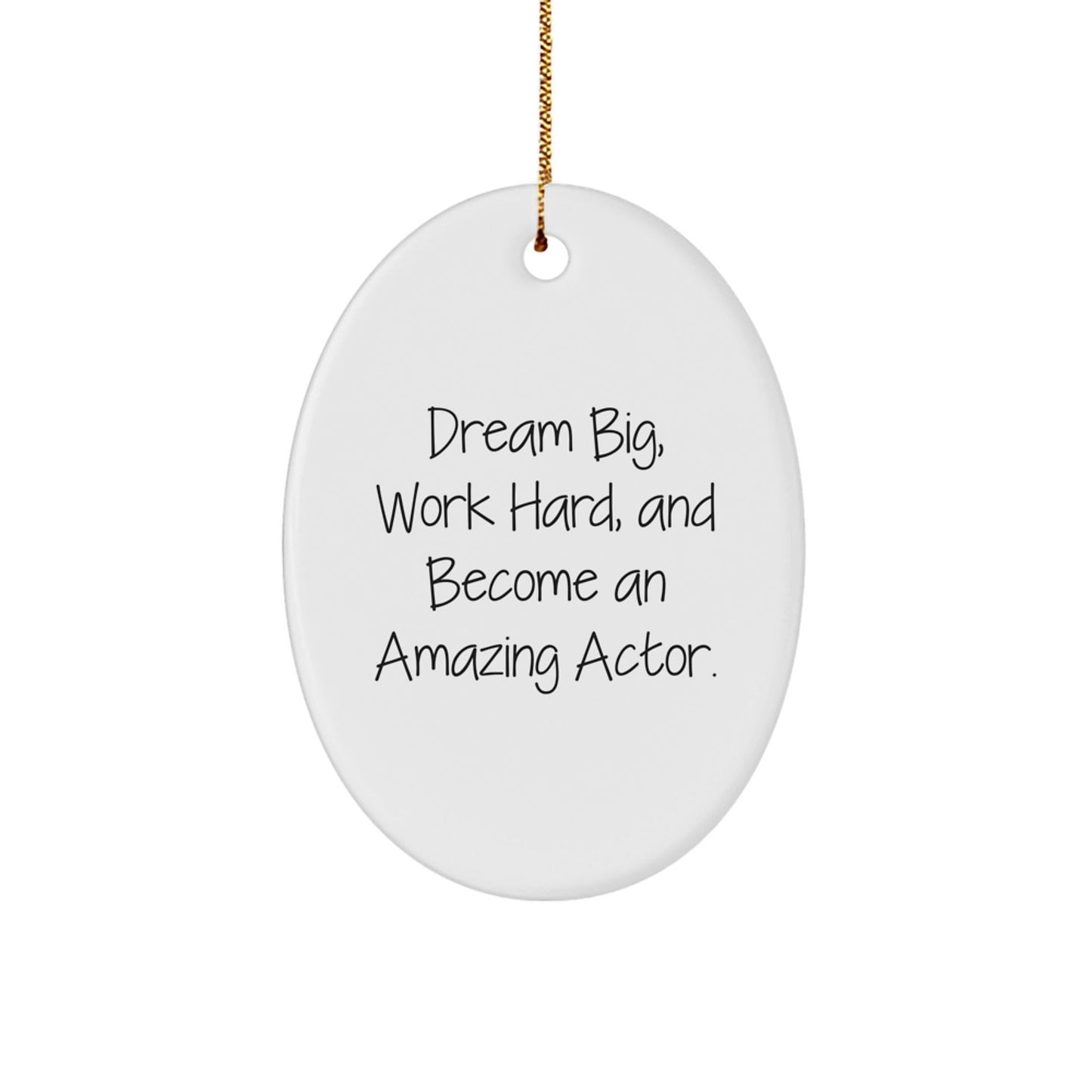 Are you looking for a unique gift for the actor in your life? Look no further! This oval ornament is the perfect way to show your appreciation for their hard work and dedication to their craft. The quote 'Dream Big, Work Hard, And Become An Amazing Actor.' is a great reminder of the importance of perseverance and believing in oneself. This ornament is also a beautiful addition to any Christmas tree or home decor.