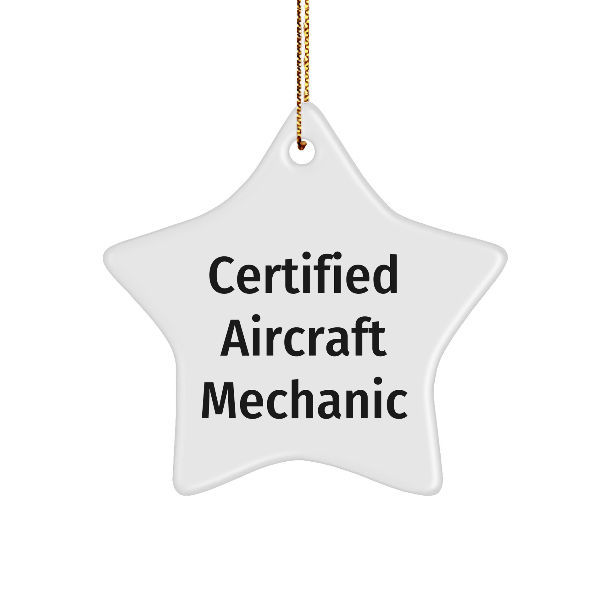 - Add a touch of aviation magic to your holiday decor with this exclusive 'Certified Aircraft Mechanic' star ornament. Its unique design and vibrant colors will shine brightly on your Christmas tree or mantel, making it a standout conversation piece.