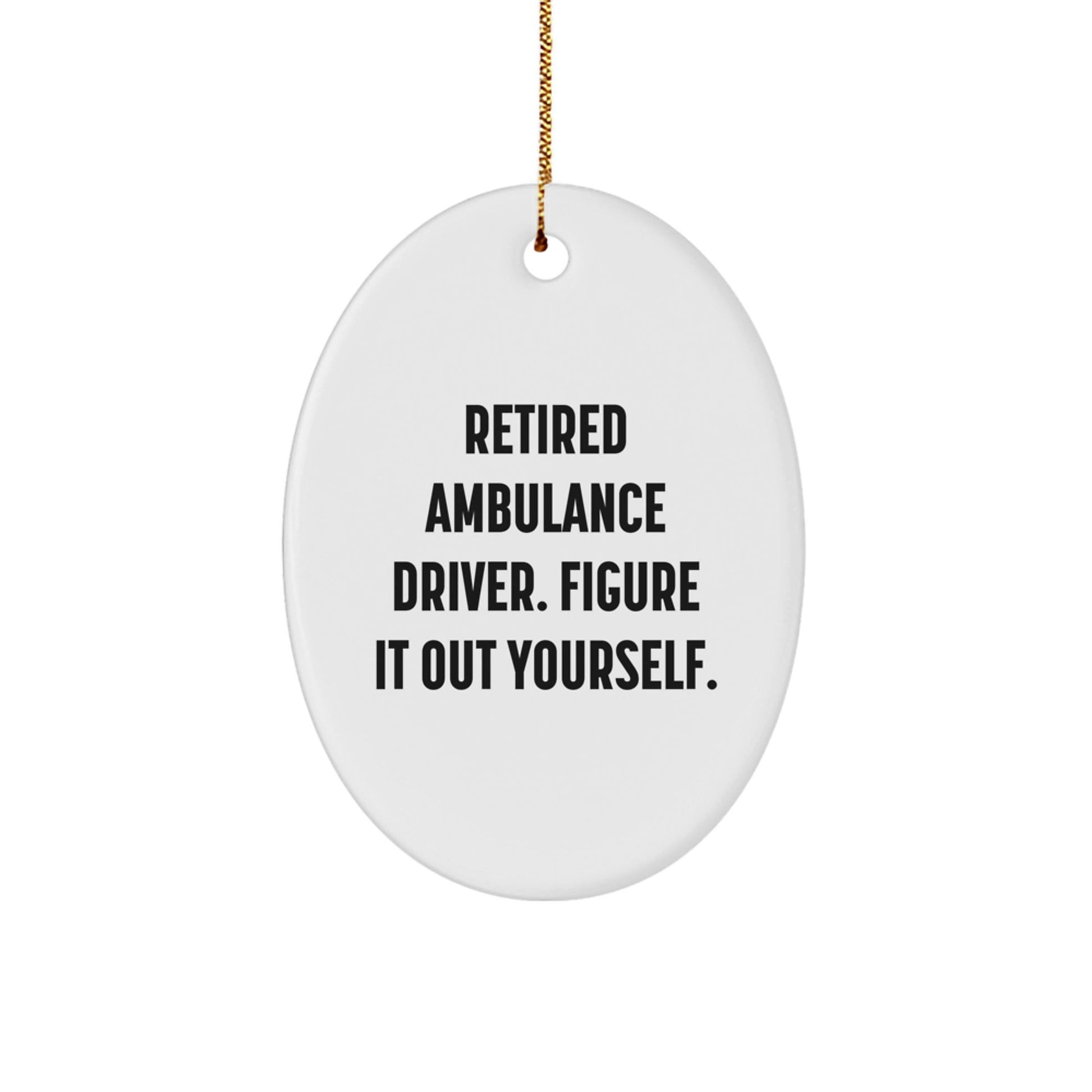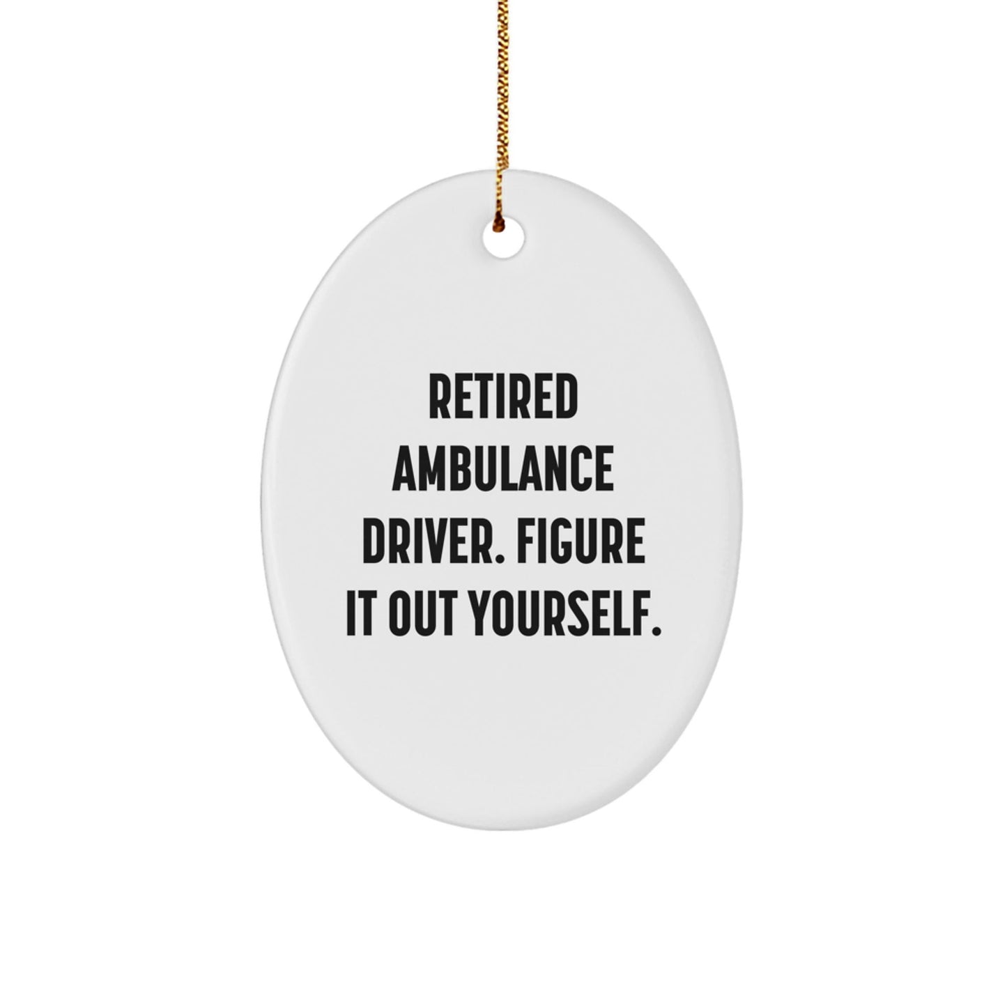 - This Ambulance Driver Oval Ornament features a humorous quote that's sure to bring a smile to any retiree's face. It's a thoughtful gift for any Ambulance Driver who's figured it out themselves.