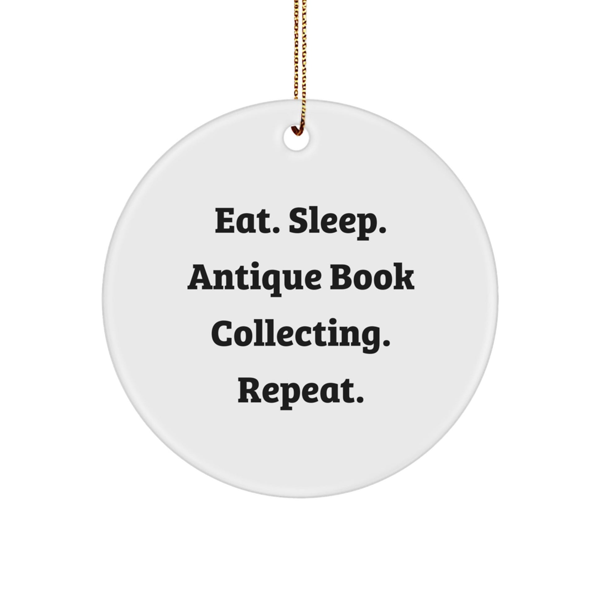 Antique book collecting is a hobby that requires dedication and passion, and this ornament is the perfect way to show that you care. It's a thoughtful gift that will be treasured for years to come. So why wait? Get your 'Eat. Sleep. Antique Book Collecting. Repeat.' Circle Ornament today and spread the joy of antique book collecting to those around you.