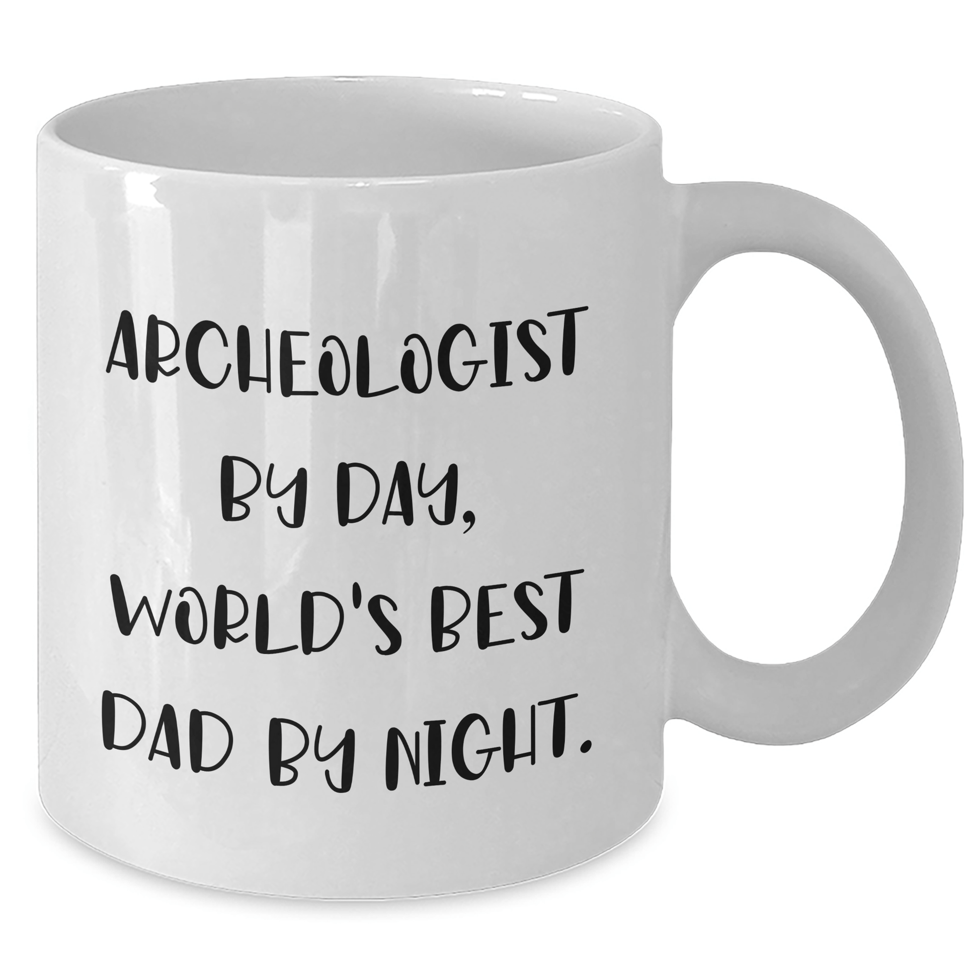 - 'Archeologist By Day, World's Best Dad By Night.' quote adds a touch of humor and personality to the gift