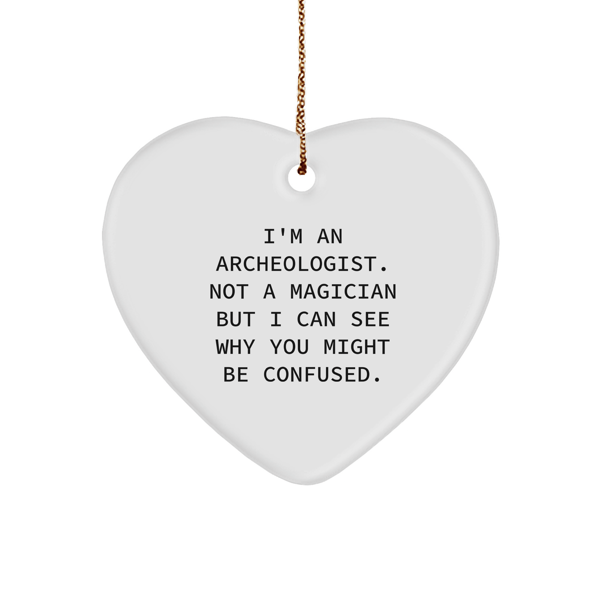 Are you an archeologist or know someone who is? Look no further! Our Heart Ornament is the ideal gift for any archeology enthusiast. I'm An Archeologist. Not A Magician But I Can See Why You Might Be Confused. is a funny quote that will make any archeologist smile. This heart-shaped ornament is crafted from sturdy MDF and features a high-gloss plastic finish, ensuring it will last for years to come. The vibrant colors will add a pop of color to any room, and the lightweight design makes it easy to hang. Whether you're shopping for a birthday, Christmas, or just because, this ornament is sure to delight. Gift it to your favorite archeologist today! Even better, give it to a friend or family member who loves archeology. They'll appreciate the thought and humor behind this unique gift. So why wait? Don't miss out and get ready to make someone's day a little brighter!