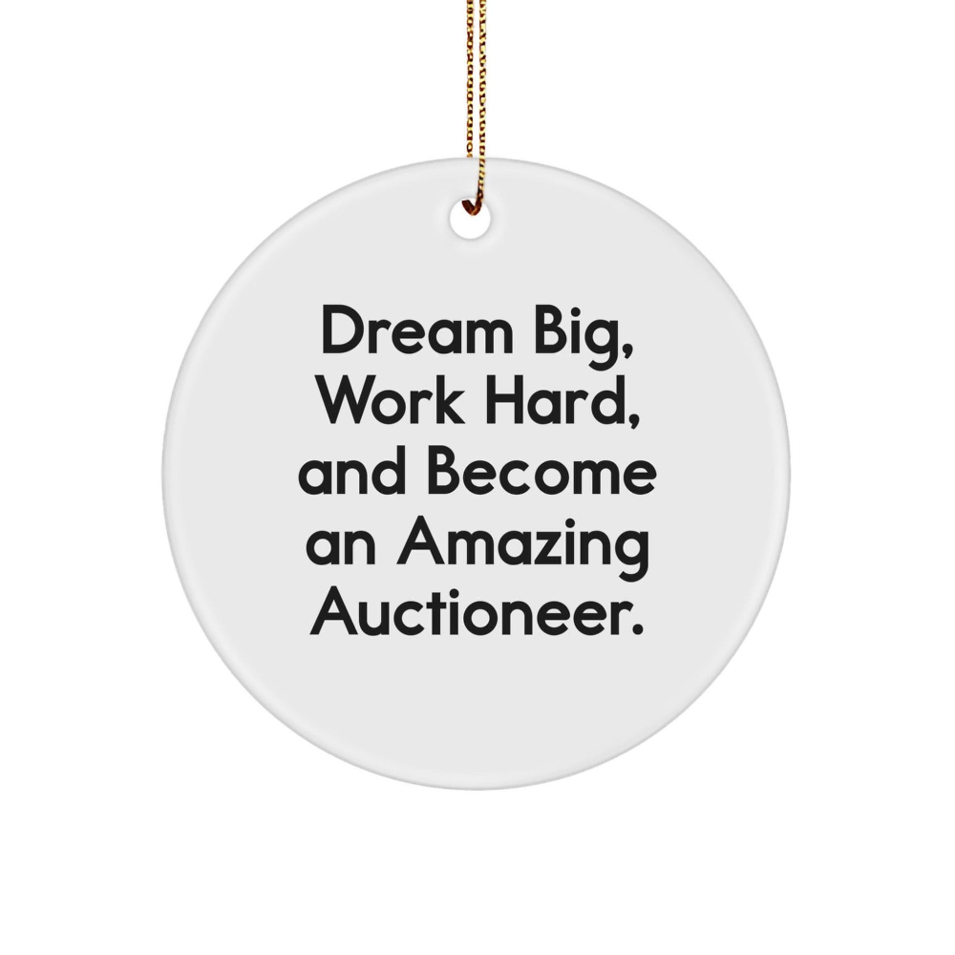 - Get your 'Dream Big, Work Hard, And Become An Amazing Auctioneer.' Circle Ornament today and make it a Christmas to remember! Whether you're celebrating a milestone or just want to show your appreciation, this auctioneer circle ornament is the perfect way to do so.