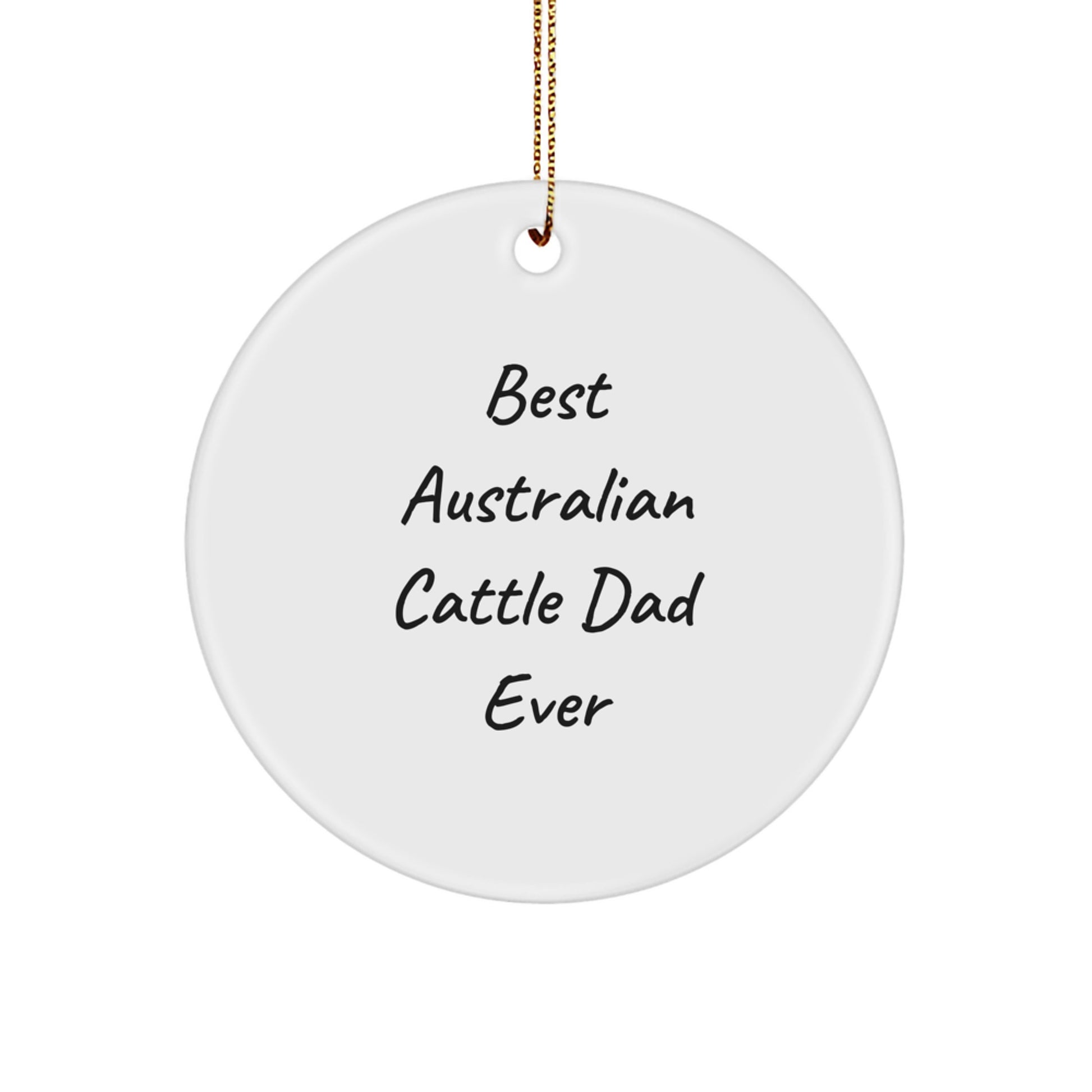 If you're a fan of Australian Cattle Dogs, you'll love this funny and adorable Circle Ornament! It's the ideal gift for the Australian Cattle Dog enthusiast in your life, whether it's a dad, mom, friend, or family member. This Christmas season, show your appreciation for the 'Best Australian Cattle Dad Ever' with this unique and thoughtful present. The quote is a great way to express your feelings and add a personal touch to the gift.