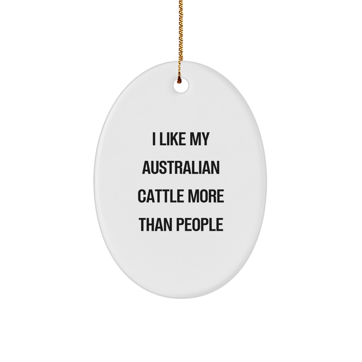 - Make this Christmas season one to remember with the 'I Like My Australian Cattle More Than People' oval ornament, a unique and thoughtful gift for any dog lover in your life. The ornament's oval shape and white color make it a beautiful addition to any holiday display, and its lightweight design ensures it's easy to hang and won't break.