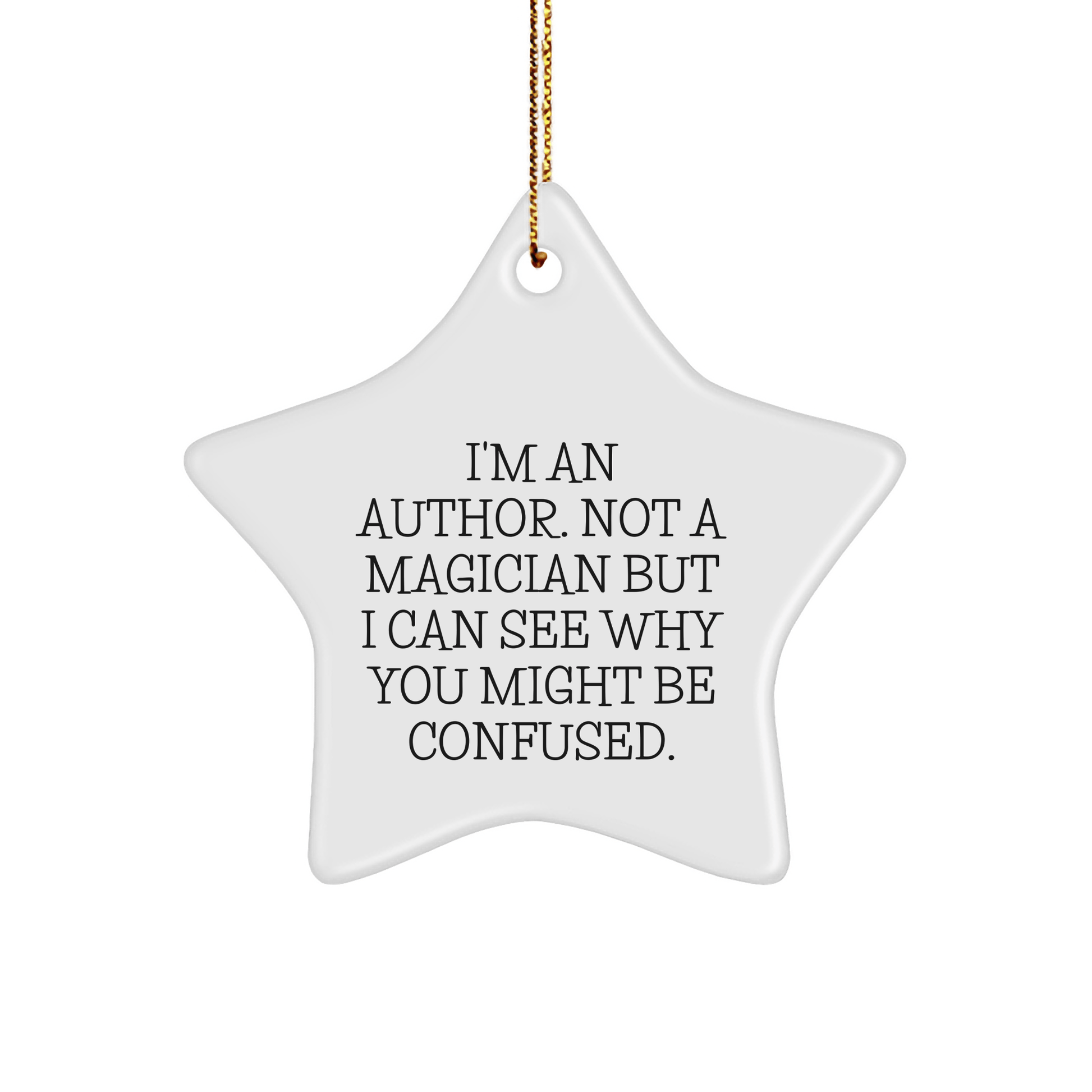 - A unique and thoughtful gift for authors and book lovers, featuring a quote that will resonate with them: 'I'm An Author. Not A Magician But I Can See Why You Might Be Confused.'
