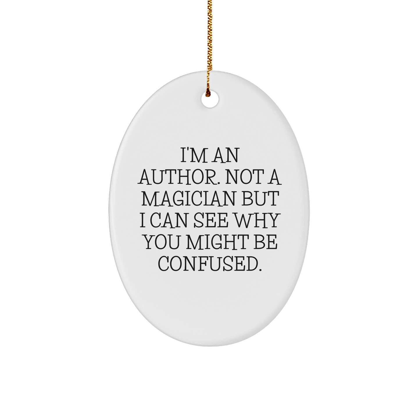 - This Author Oval Ornament is a thoughtful gift for any book lover, featuring the hilarious quote 'I'm An Author. Not A Magician...'