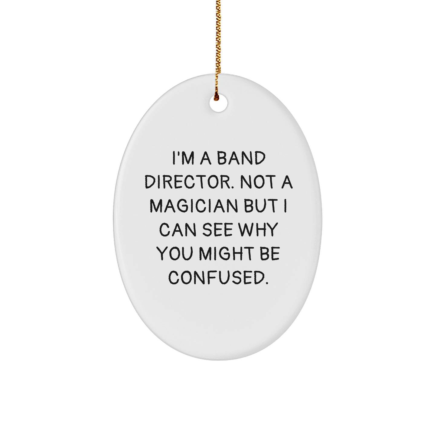 - Add a touch of humor and whimsy to your holiday decorations with our Band Director Oval Ornament featuring the funny quote, 'I'm A Band Director. Not A Magician But I Can See Why You Might Be Confused.'