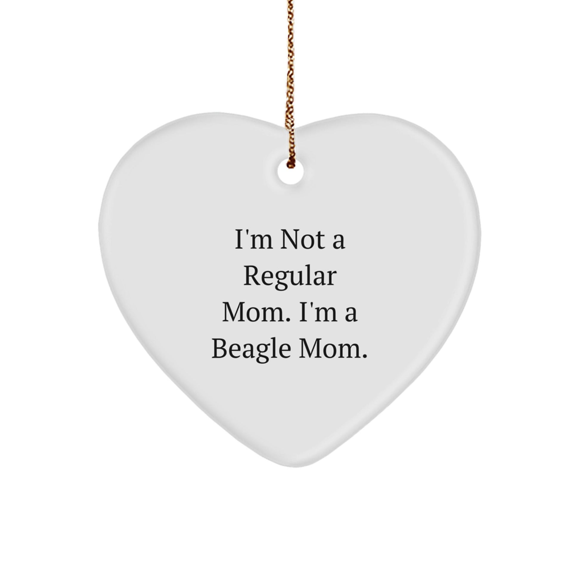 Are you a Beagle Dog enthusiast or searching for a unique Christmas gift for the Beagle Dog lover in your life? Look no further! This heart-shaped ornament is a thoughtful and humorous way to show your love and appreciation for these adorable dogs. The vibrant design features the quote 'I'm Not A Regular Mom. I'm A Beagle Mom.' in a fun, playful font.