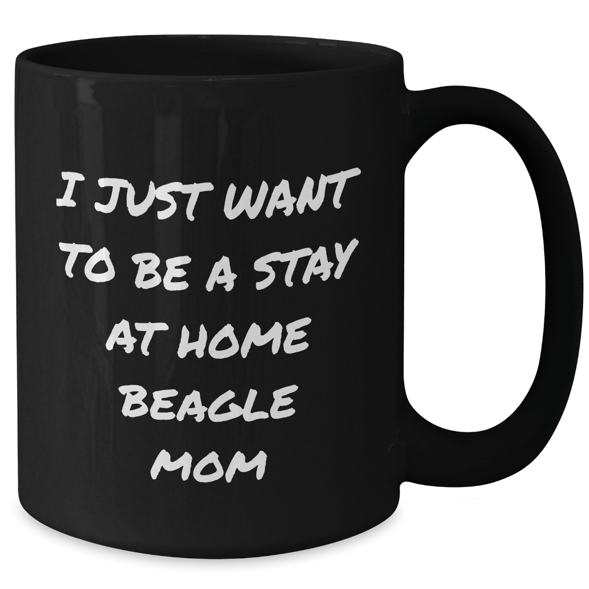 Are you a Beagle Dog enthusiast looking for a unique gift for your loved one? Look no further! This Black Coffee Mug features a funny quote 'I Just Want To Be A Stay At Home Beagle Mom' that is sure to delight any Beagle Dog lover. Made of high-quality ceramic, this mug is sturdy and long-lasting. It is also microwave and dishwasher safe, making it easy to clean and maintain. Whether you're buying for yourself or sending as a gift to friends or family, this mug is the perfect way to show your love for Beagle Dogs. So why wait? Don't miss out and make someone's day a little brighter!