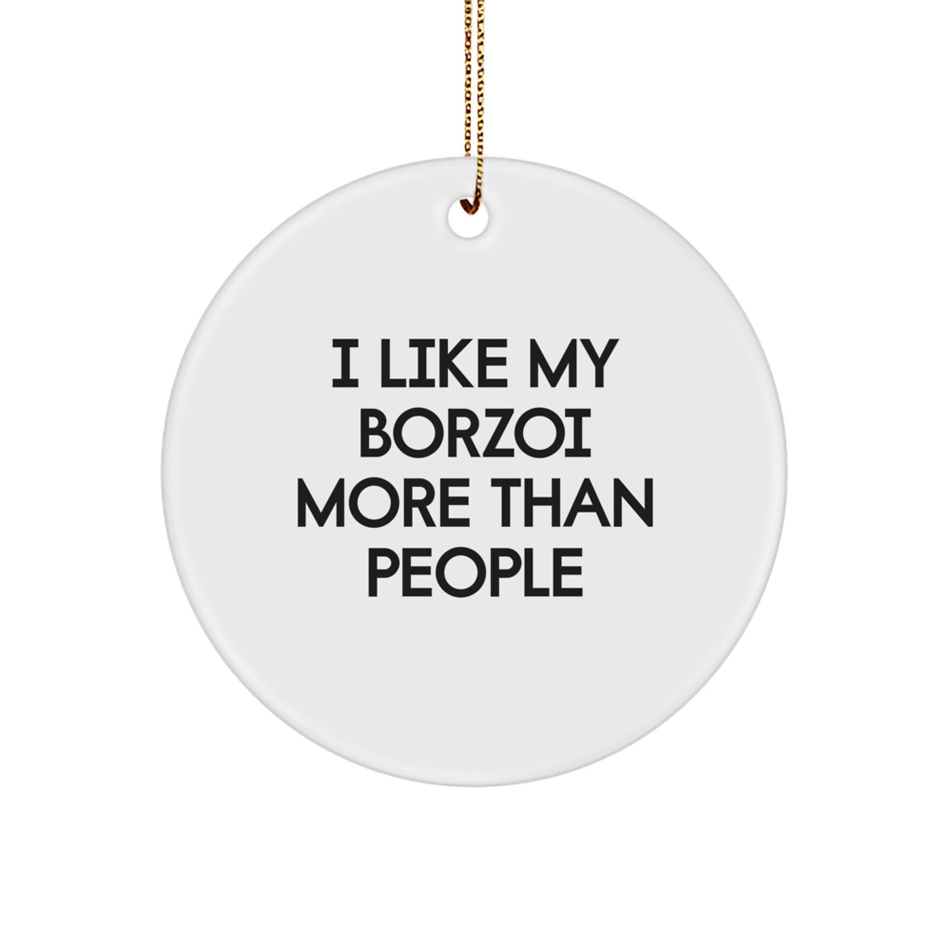 - Emphasize your love for Borzoi Dogs with this unique Circle Ornament, featuring the funny quote 'I Like My Borzoi More Than People'.