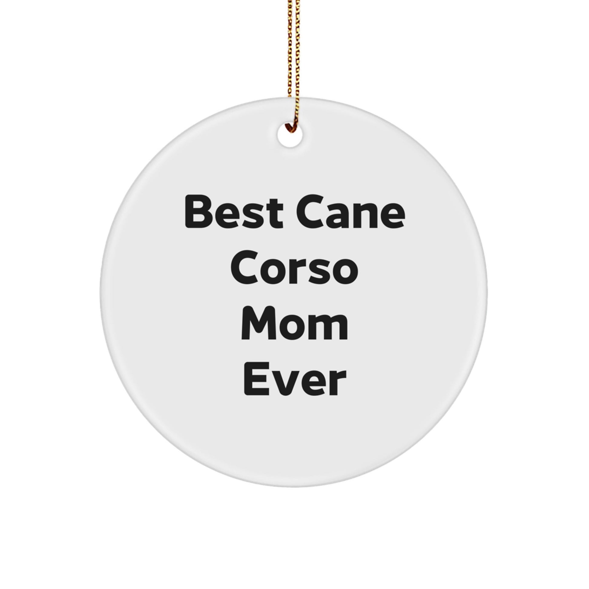 - Features a beautiful and high-quality print of the quote 'Best Cane Corso Mom Ever' on a white circle-shaped ornament