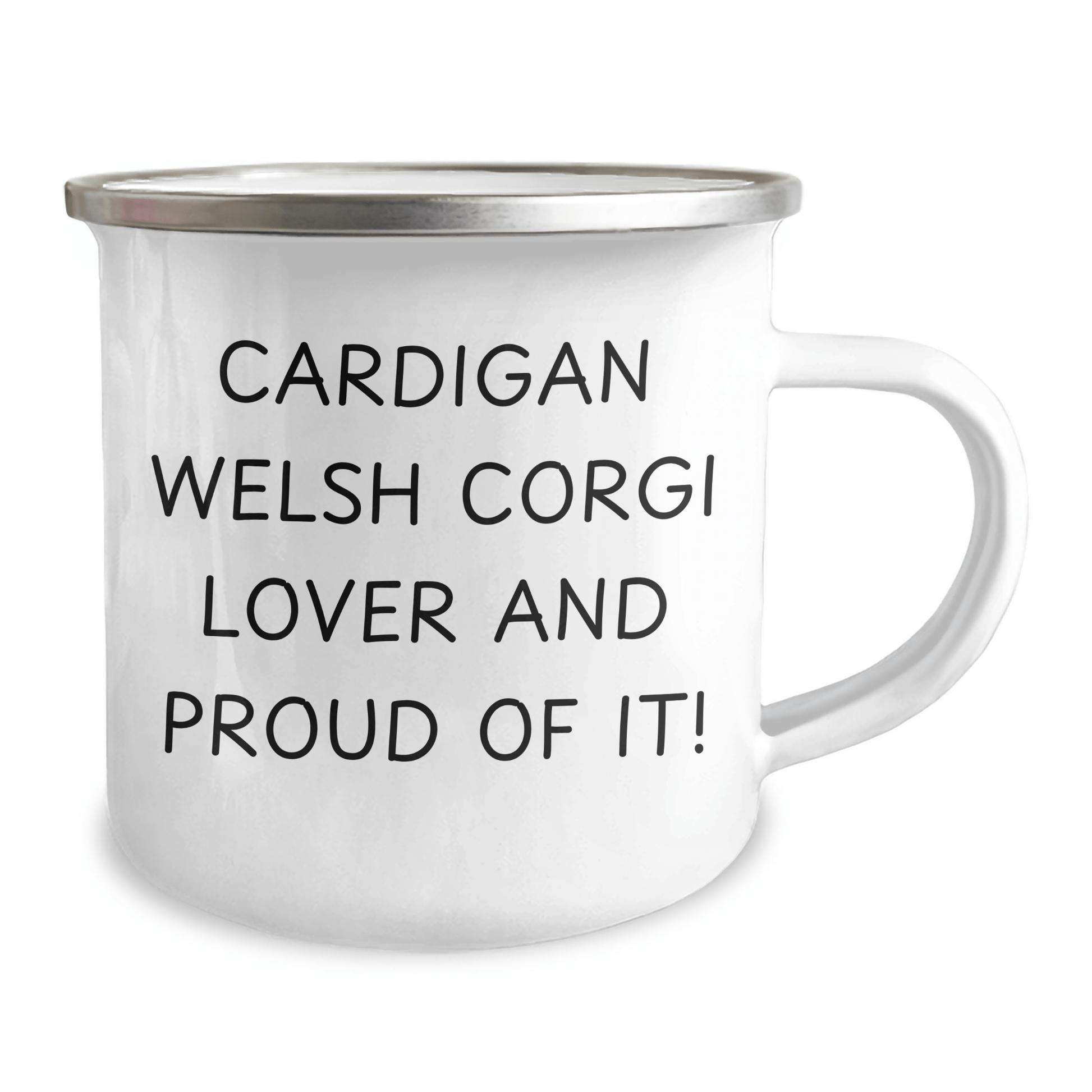 - Make a statement with this unique 'Cardigan Welsh Corgi Lover And Proud Of It!' camping mug, perfect for any outdoor enthusiast who loves these adorable dogs. With its stainless steel with enamel finish and 12 oz capacity, it's sturdy and easy to use on your next camping trip. The permanent printing ensures the design won't fade after washing.