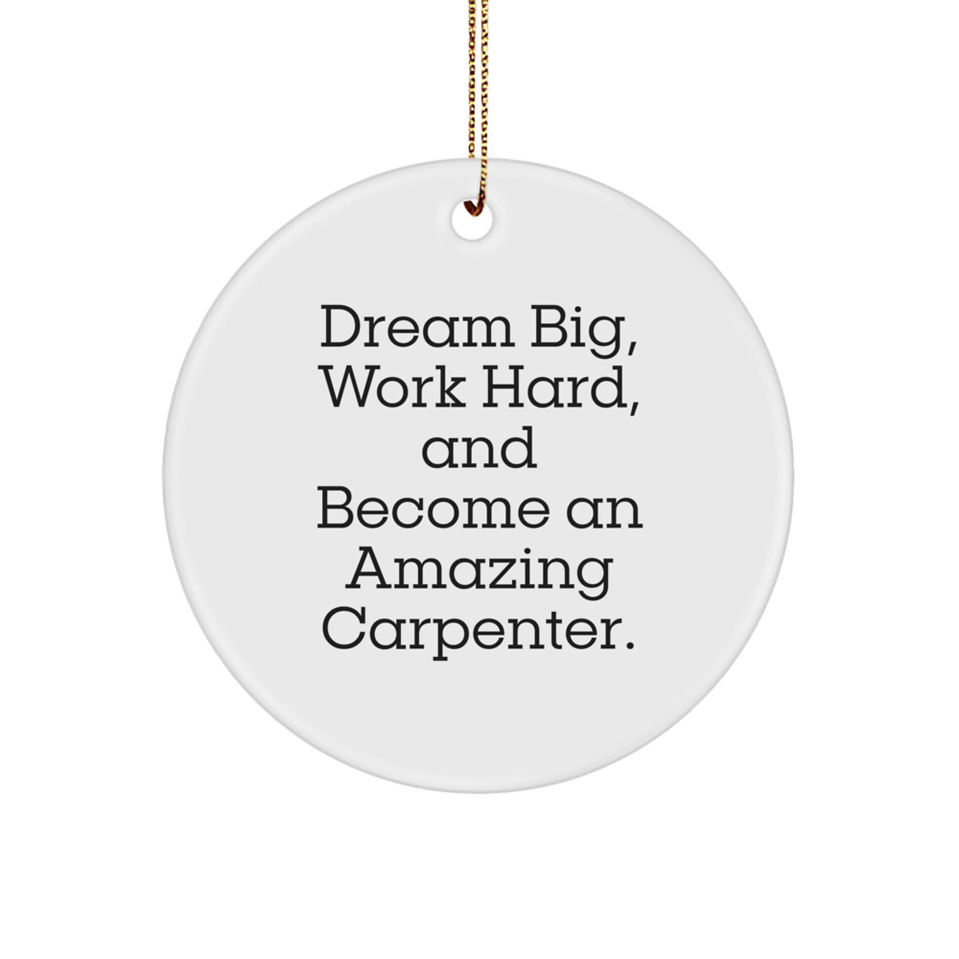 - This Circle Ornament is a unique and thoughtful gift for any Carpenter, featuring an inspirational quote that will motivate and inspire them to 'Dream Big, Work Hard, And Become An Amazing Carpenter.'