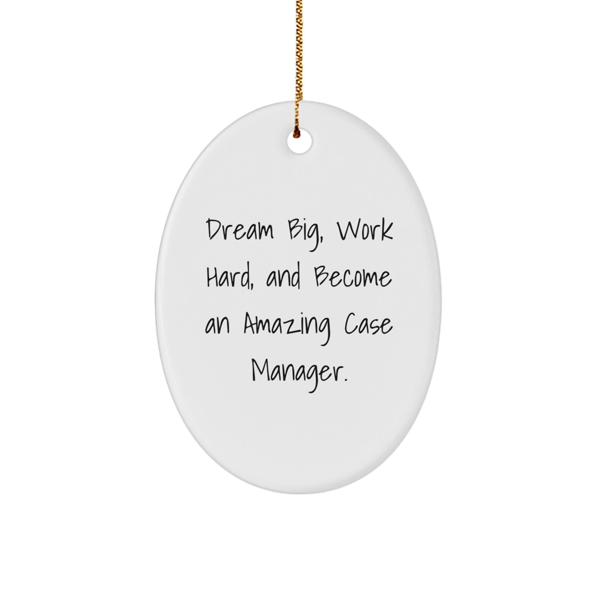 - Give a thoughtful gift to your favorite case manager or add a personal touch to your own workspace with this inspirational oval ornament, featuring a motivational quote and a festive design, perfect for decorating any office or home, and a reminder to 'Dream Big, Work Hard, And Become An Amazing Case Manager.'