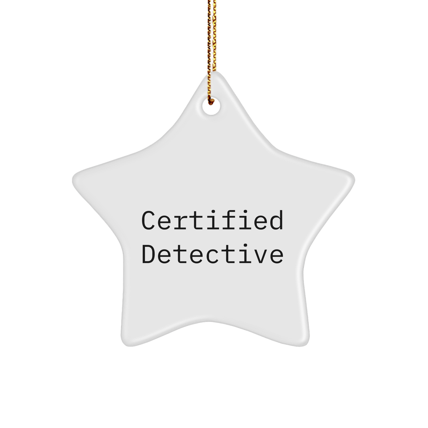 - Our Star Ornament is a unique and thoughtful gift for the detective in your life, symbolizing their dedication and attention to detail. The 'Certified Detective' quote adds a personal touch, making it a special addition to any room or office.