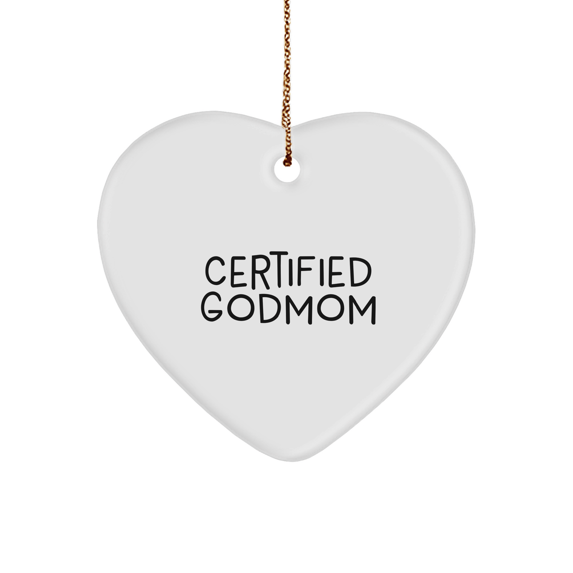 - Give the gift of love and laughter this Christmas with this Certified Godmom funny quote heart ornament - a truly special and meaningful gift.