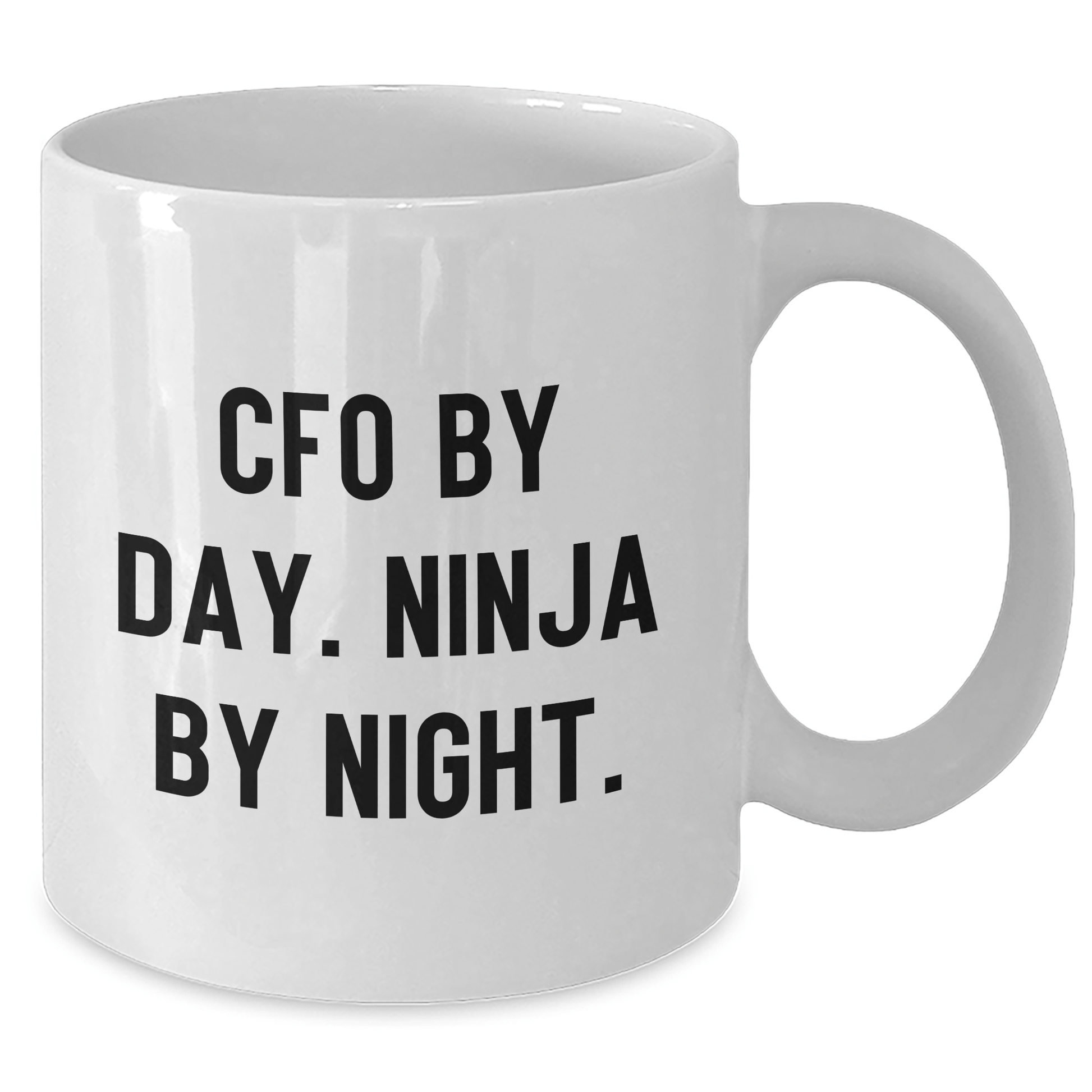- Make a statement with this funny coffee mug, featuring the quote 'CFO By Day. Ninja By Night.' - a unique and humorous way to celebrate the graduation of a CFO from friends or family.