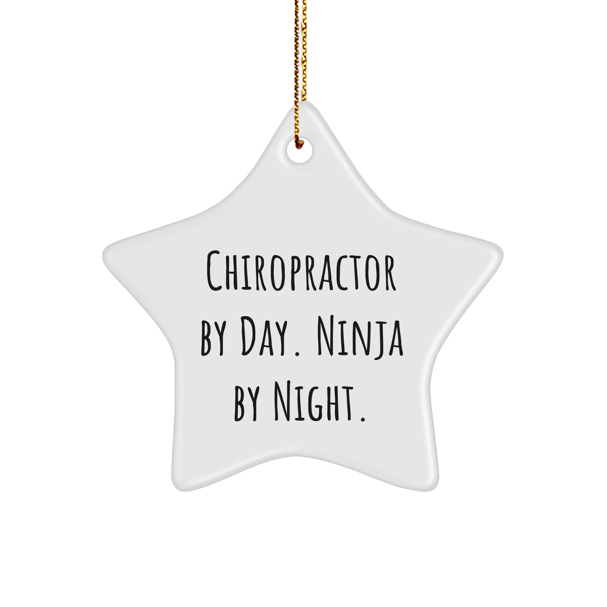 - This star ornament is the perfect way to show your appreciation for the chiropractor in your life, with its funny quote 'Chiropractor by day, ninja by night'.