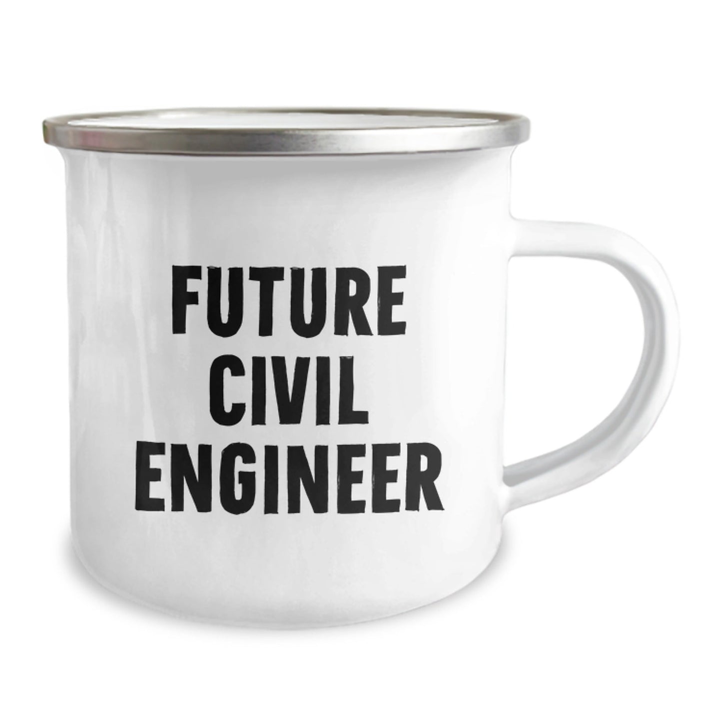 Are you looking for a unique gift for the future civil engineer in your life? This funny camping mug is the perfect way to celebrate their graduation and future endeavors. With a quote that reads, 'Future Civil Engineer', this mug is sure to bring a smile to their face. Made of stainless steel with an enamel finish, this 12 oz mug is sturdy and easy to clean. The permanent printing ensures that the design won't fade after washing. Whether you're a family member, friend, or coworker, this gift is sure to be a hit. So why wait? Don't miss out and make their graduation day even more special.