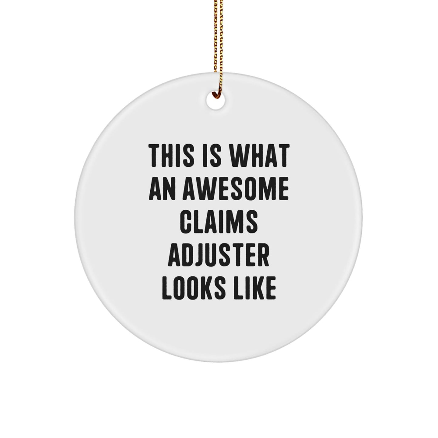 Are you looking for a unique gift for the Claims Adjuster in your life? Something that reflects their awesome personality? This 'This Is What An Awesome Claims Adjuster Looks Like' Circle Ornament is the perfect choice! Made from sturdy MDF with a high-gloss plastic finish, it's lightweight and resistant to breaking, making it a great choice for households with children or pets. The festive gold cord for easy hanging adds a touch of elegance. Whether you're a Claims Adjuster enthusiast yourself or just looking for a thoughtful gift, this ornament is sure to bring a smile to their face. Share the spirit of Christmas with the Claims Adjuster in your life!
