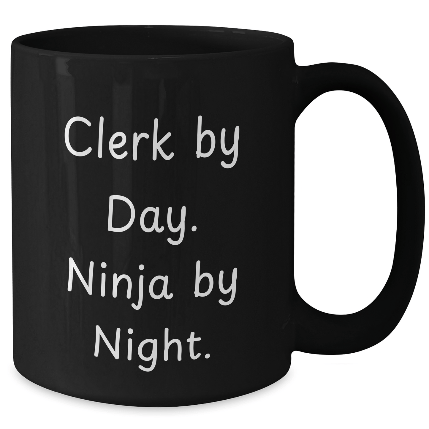 Are you a fan of the humble Clerk, toiling away by day only to unleash their inner ninja by night? Look no further for the ultimate gift! Our Black Coffee Mug features the empowering quote