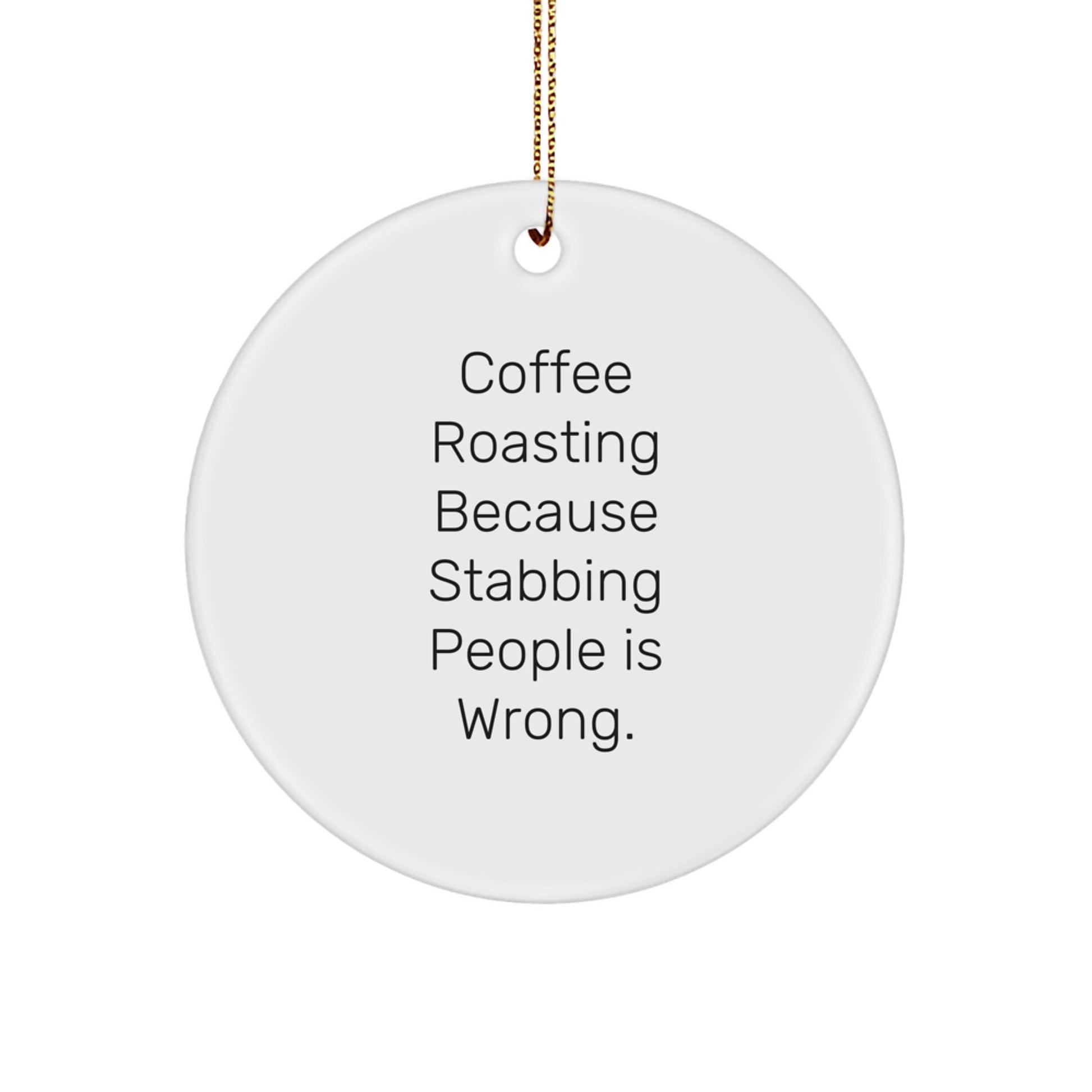 - The funny quote, 'Coffee Roasting Because Stabbing People Is Wrong.', adds a touch of humor and personality to the ornament, making it a great conversation starter.