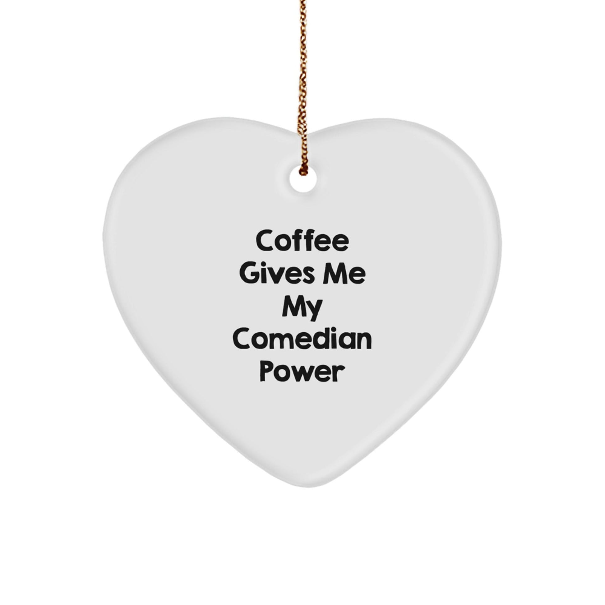 - 'Coffee Gives Me My Comedian Power' heart ornament - a unique gift for comedian enthusiasts, friends, family, or coworkers. Don't miss out and show your comedian pride!