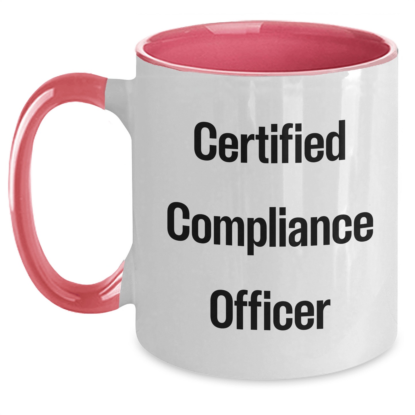 - Enhance your Compliance Officer identity with this 'Certified Compliance Officer' quote on a premium Two Tone Coffee Mug, perfect for sipping your morning coffee or tea while showcasing your professionalism and expertise in the field of compliance.
