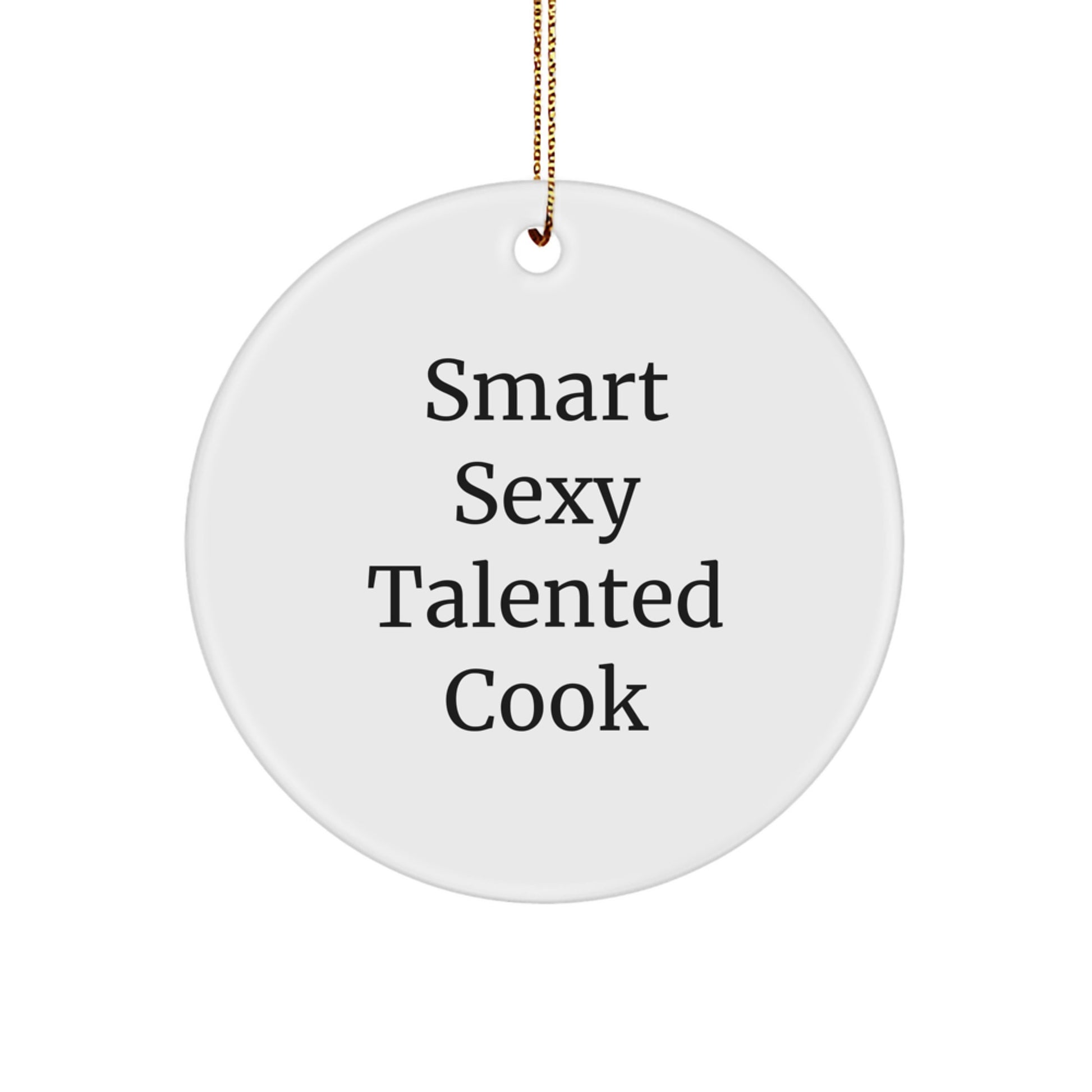 - The quote on this Circle Ornament reads: 'Smart, Sexy, Talented Cook', making it a humorous way to celebrate the cook in your life.