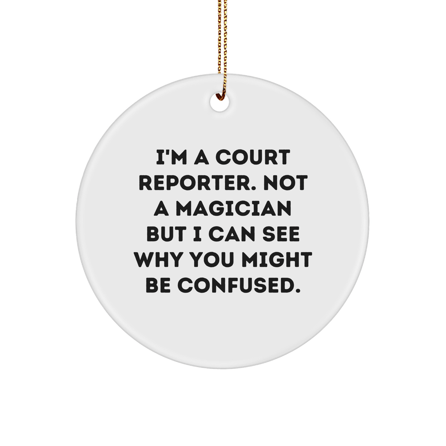 Whether you're shopping for a Court Reporter or just want a unique gift for the holidays, this Circle Ornament is the perfect choice. Its relatable quote and vibrant colors make it a thoughtful and hilarious gift for anyone who's ever said 'I'm A Court Reporter. Not A Magician'. So why wait? Get your Court Reporter gift today and start making memories!