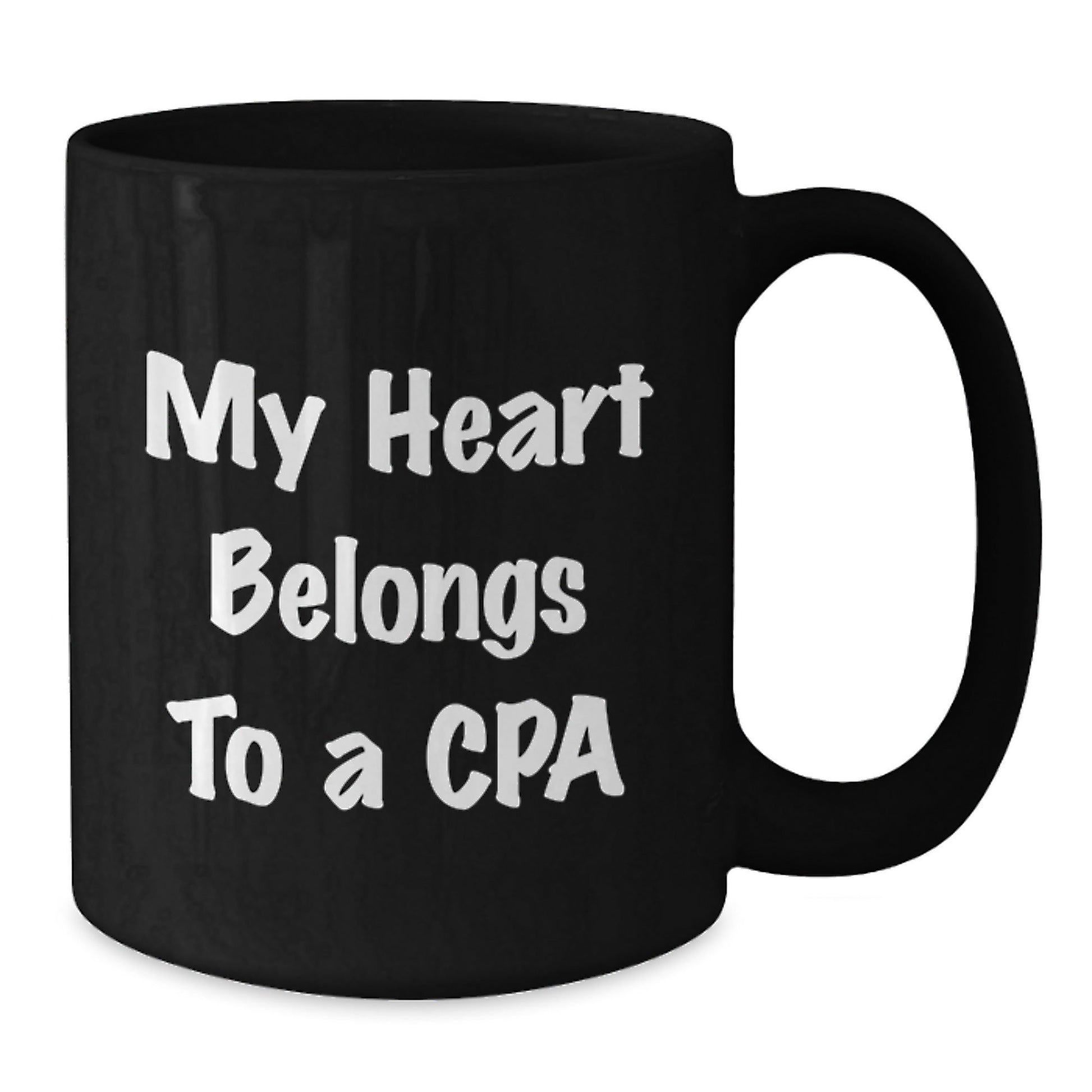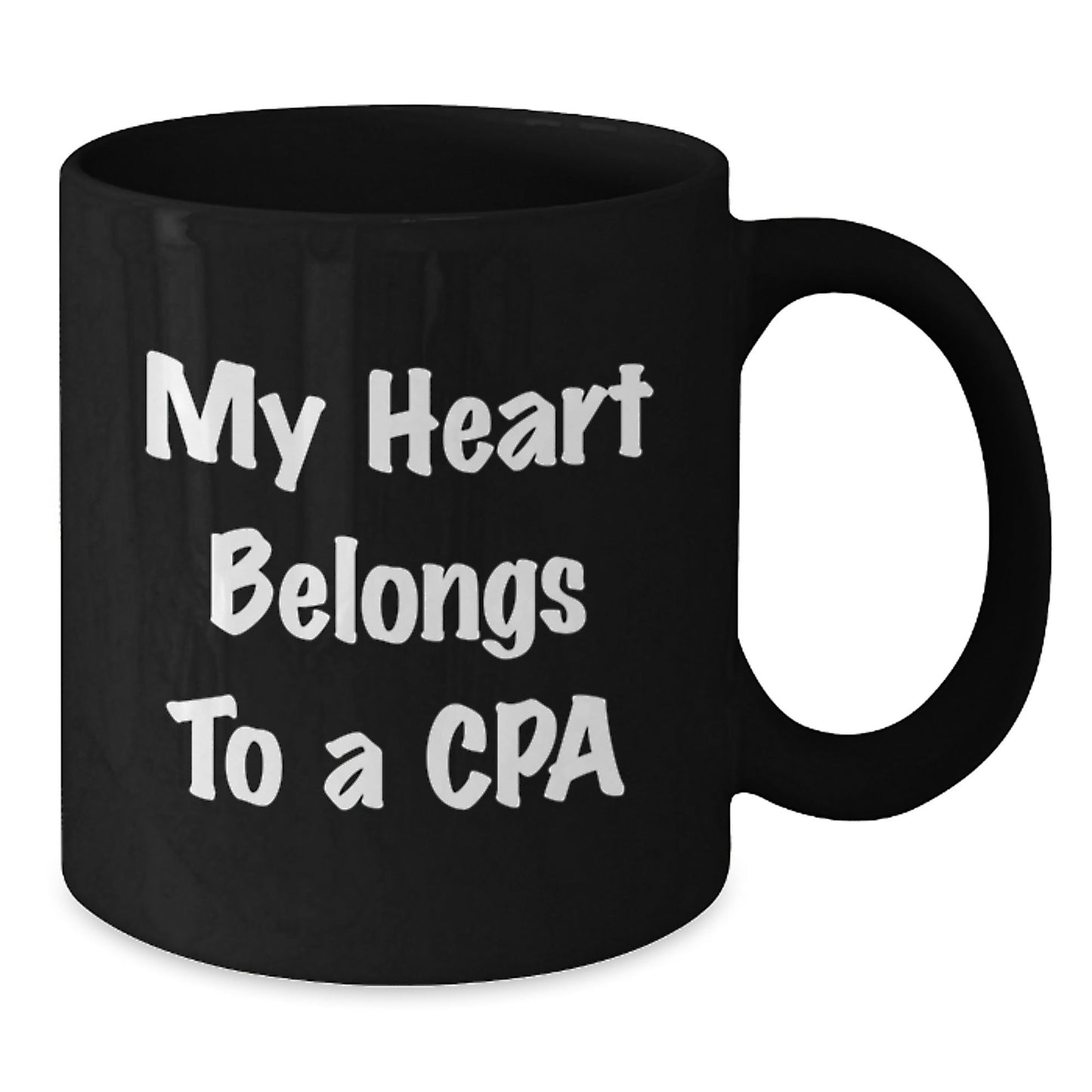 For the CPA professional in your life, this mug is a thoughtful and humorous way to acknowledge their hard work and dedication. The quote 'My Heart Belongs To A Cpa' is a fun and lighthearted way to express your appreciation, and the black coffee mug is a versatile and practical way to enjoy their favorite beverage. Whether you're giving it as a birthday gift or just because, this mug is sure to be a hit. So why wait? Get your CPA coffee mug today and show your loved one how much you care!