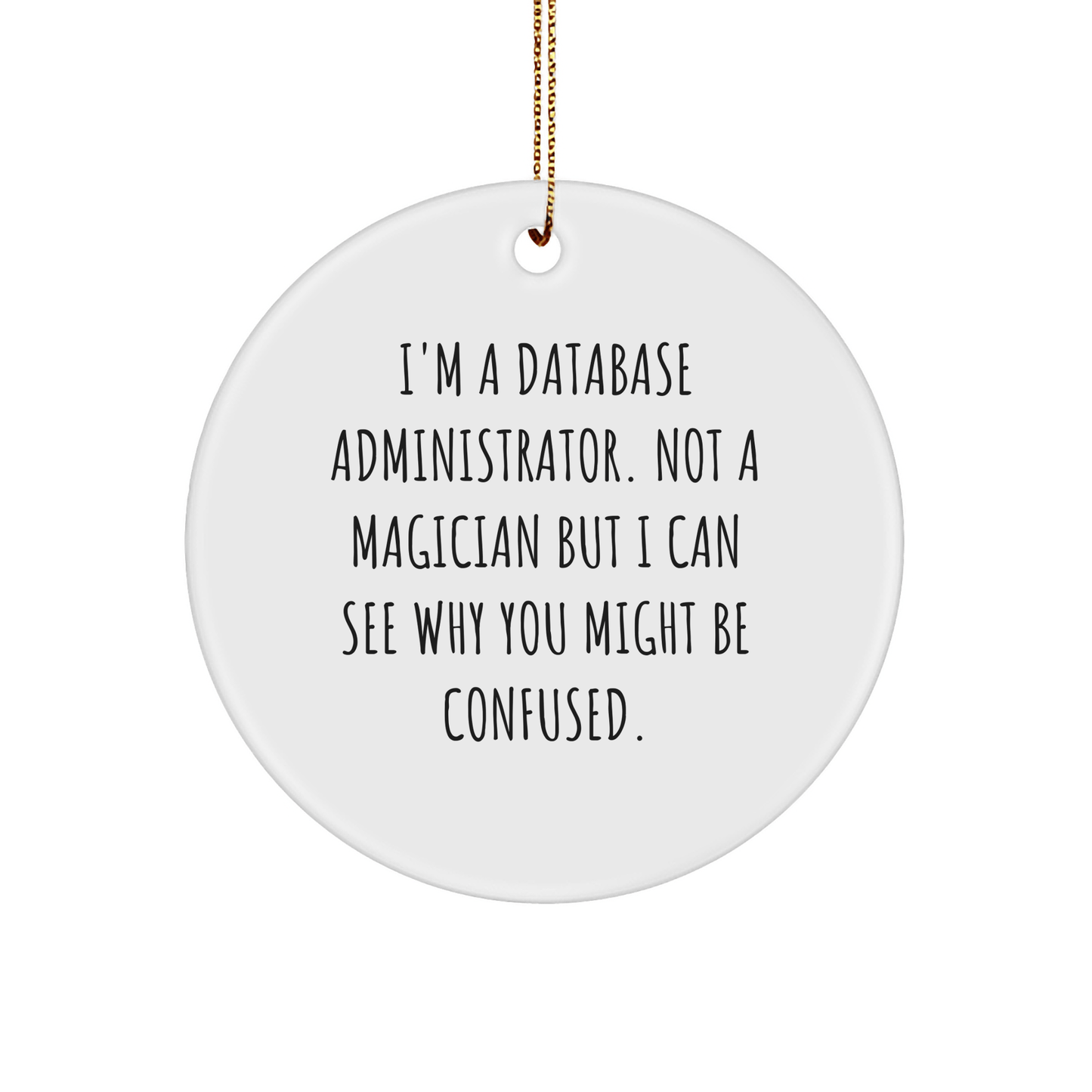 Whether you're looking for a unique gift for a Database Administrator or just want to show your appreciation for their hard work, this Circle Ornament is the perfect choice. The funny quote 'I'm Not a Magician...' will surely bring a smile to their face, and the high-quality materials ensure it will be a treasured keepsake for years to come. So, don't wait - get your Database Administrator gift today and make their Christmas a memorable one!