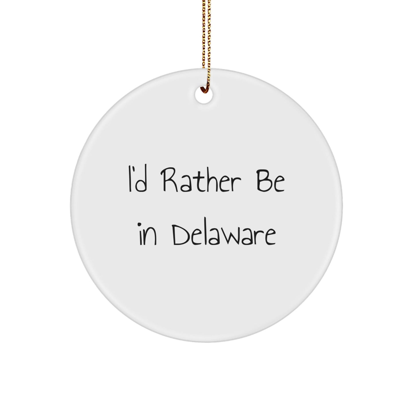 - Add a touch of Delaware pride to your Christmas decor with this unique 'I'd Rather Be In Delaware' Circle Ornament, perfect for Delaware natives, friends, and family members.