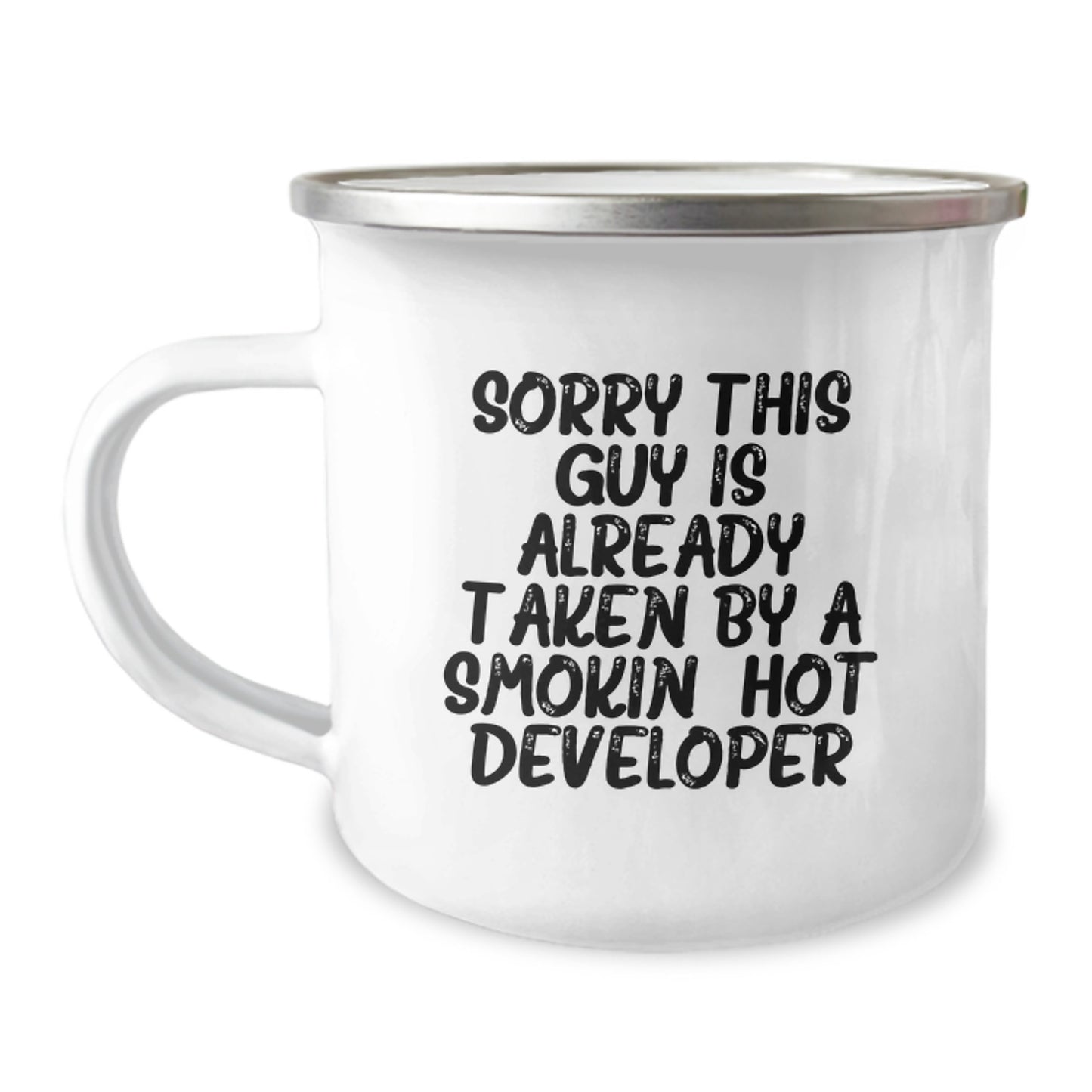 - Funny quote 'Sorry This Guy Is Already Taken By A Smokin' Hot Developer' - a humorous way to acknowledge their hard work and dedication