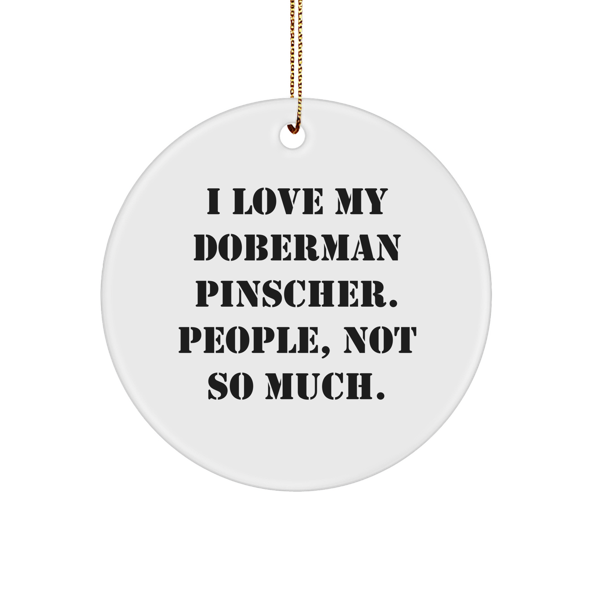 - Give the ultimate gift to a Doberman Pinscher Dog lover this Christmas with our unique 'I Love My Doberman Pinscher. People, Not So Much.' Circle Ornament, featuring a vibrant and sturdy design that will withstand the test of time.