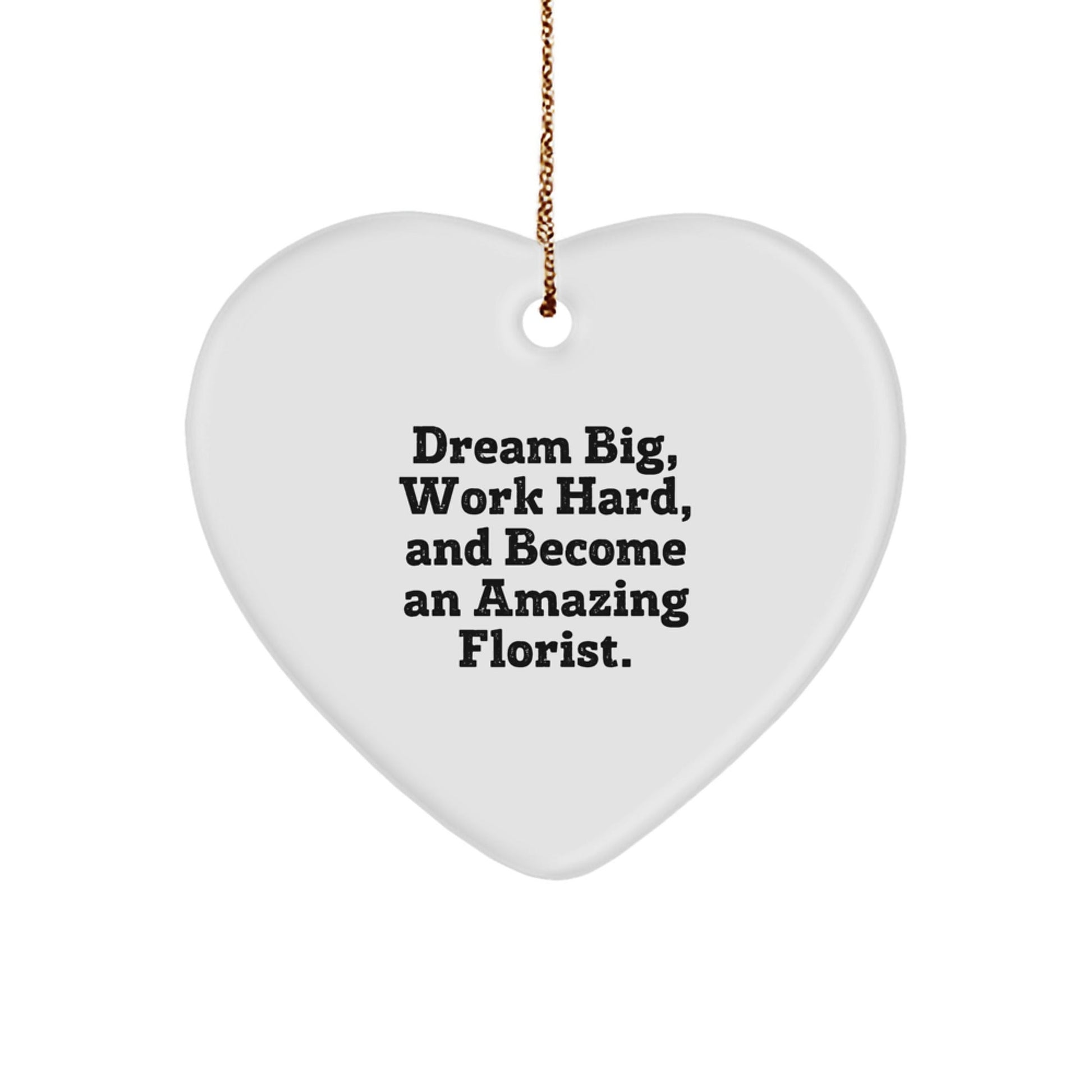 As the saying goes, 'Dream big, work hard, and become an amazing florist.' This ornament is a reminder to always strive for excellence and to never give up on your dreams. It's a great way to motivate and inspire the florists in your life to keep pushing themselves to be the best they can be.