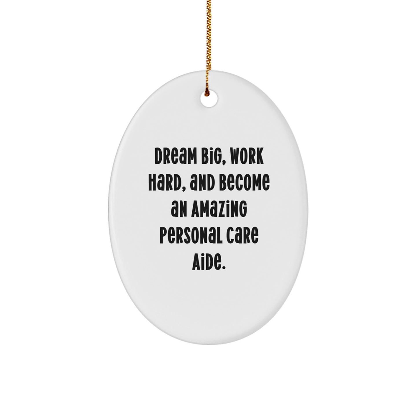 - Make a thoughtful gift for a Personal Care Aide in your life with this unique Oval Ornament. The quote 'Dream Big, Work Hard, And Become An Amazing Personal Care Aide.' is a great motivator and reminder to strive for excellence.