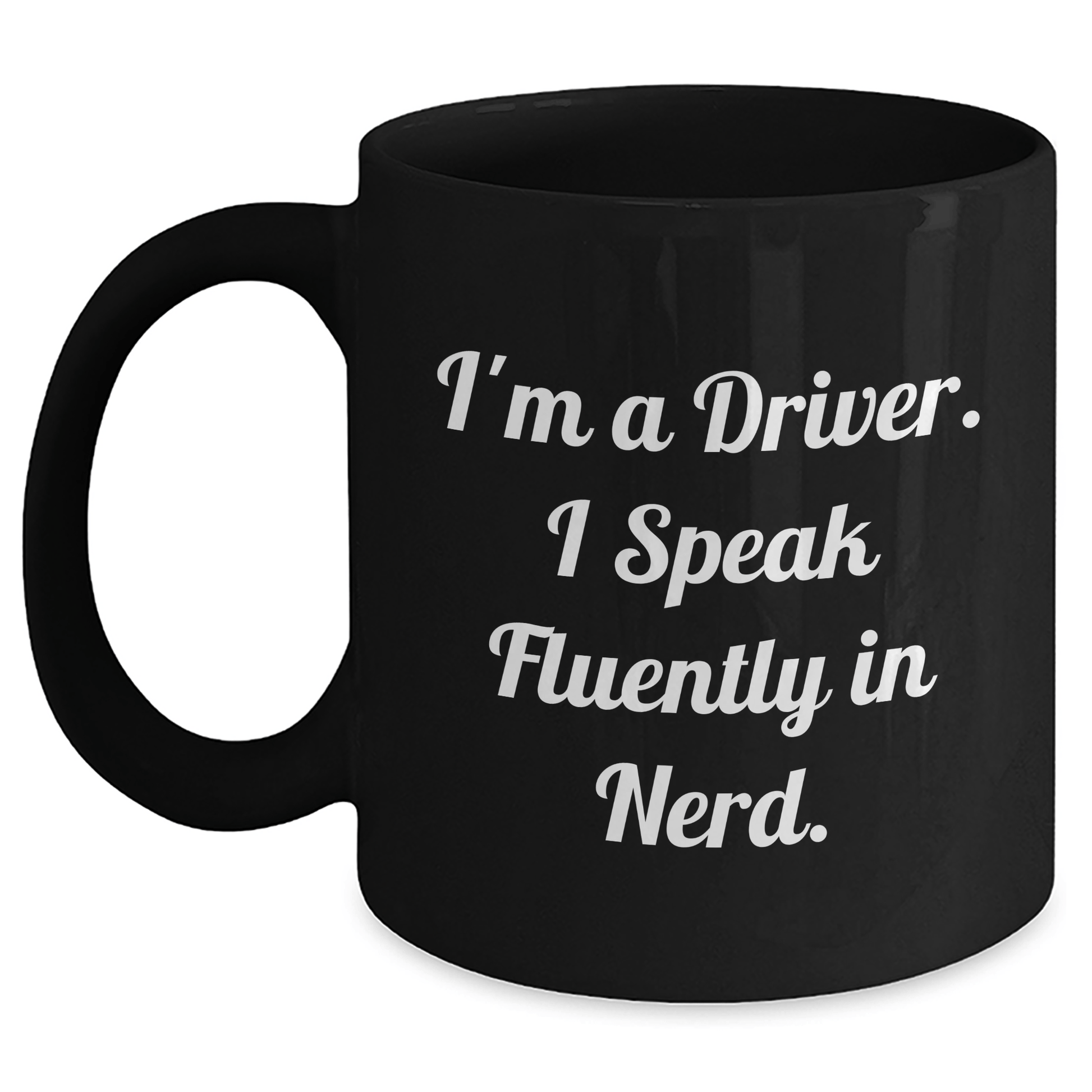 - Make a statement with this 'I'm A Driver. I Speak Fluently In genius.' black coffee mug, perfect for drivers who appreciate a good cup of coffee on-the-go. With a capacity of 11oz or 15oz, this ceramic mug is ideal for commuters and road warriors alike.,