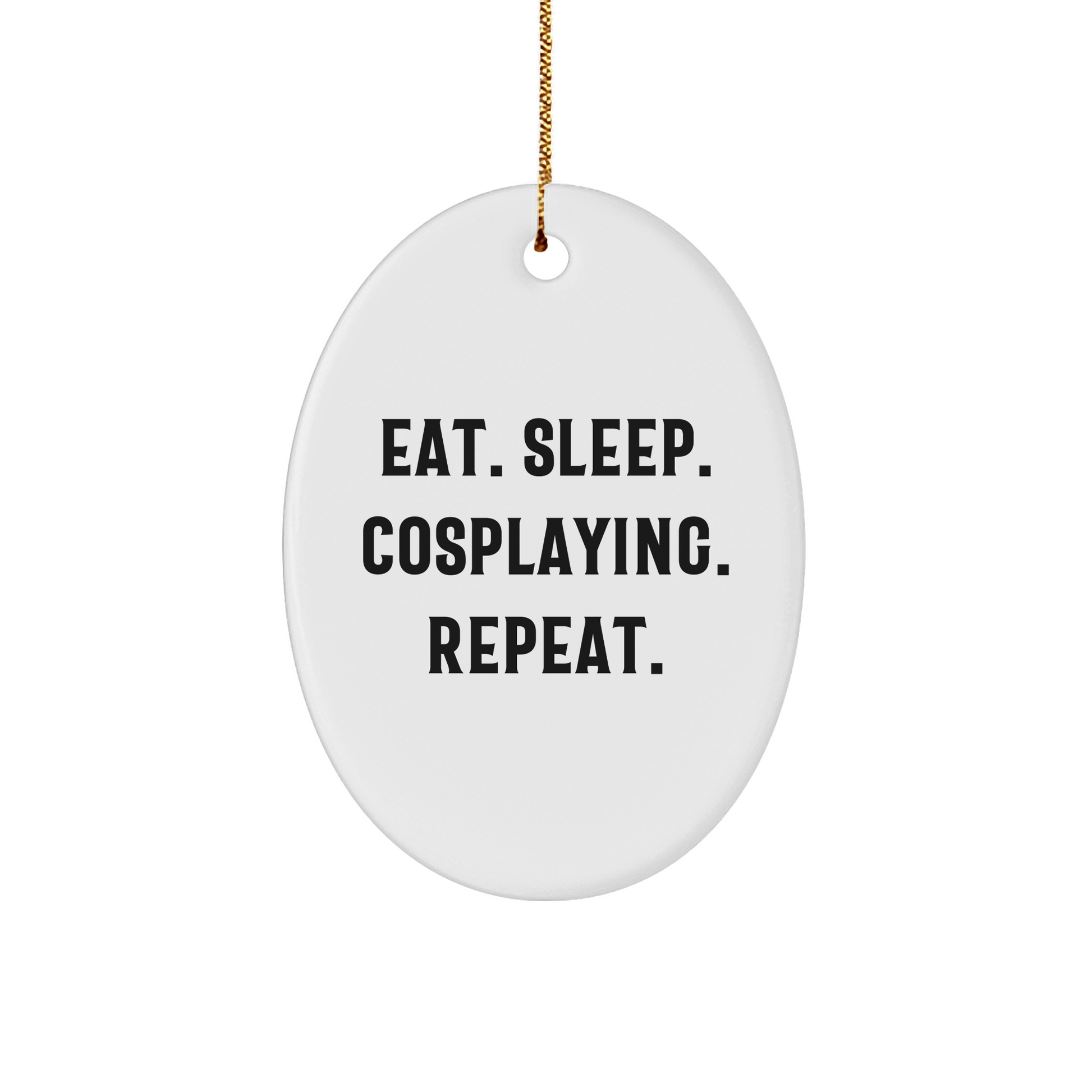 Whether you're looking for a gift for a friend, family member, or coworker, this Eat. Sleep. Cosplaying. Repeat. Oval Ornament is sure to hit the mark. So why wait? Get your ornament today and make someone's day!