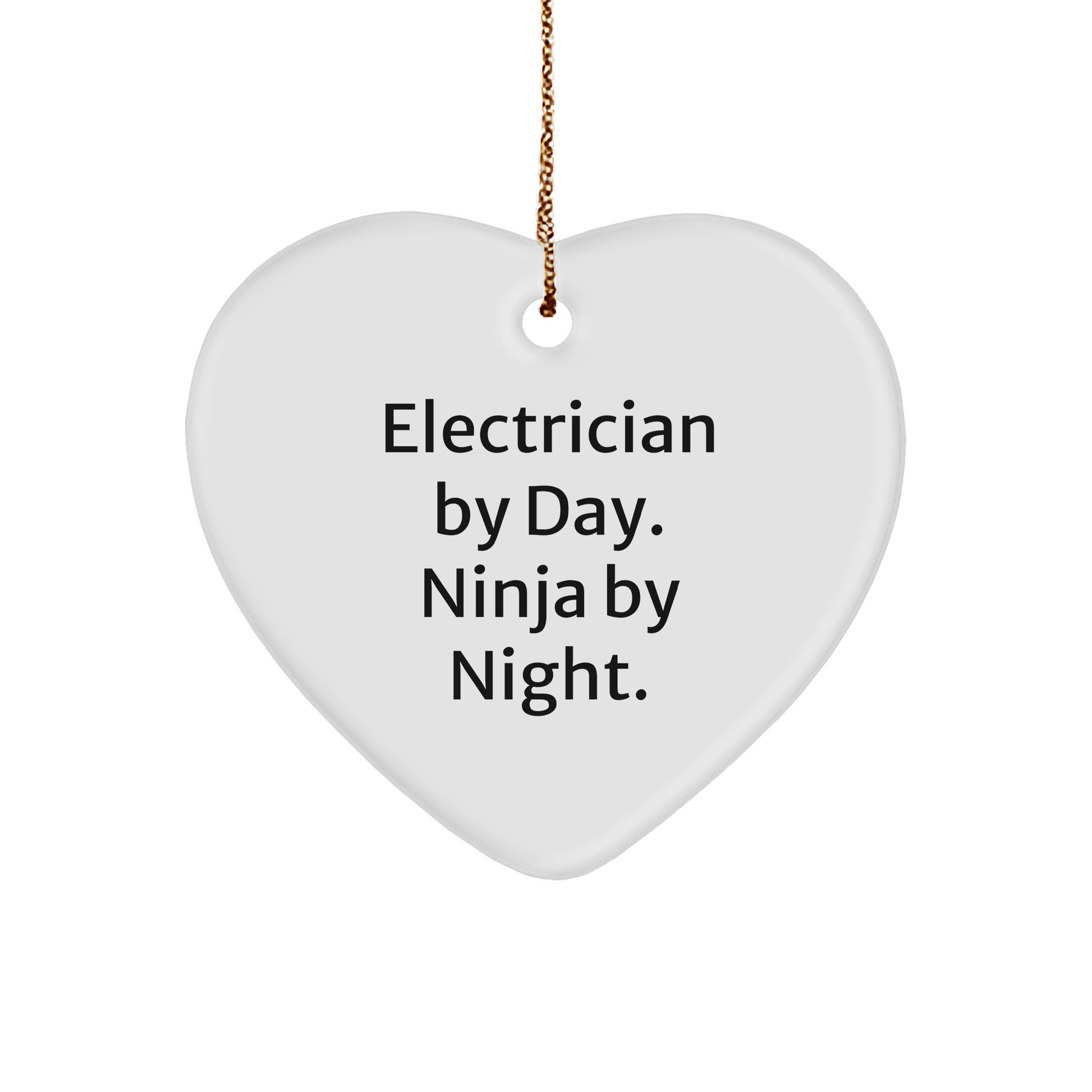 - Our Electrician By Day. Ninja By Night. Heart Ornament makes a thoughtful and unique gift for coworkers, friends, or family members. Show your appreciation for their hard work and dedication.