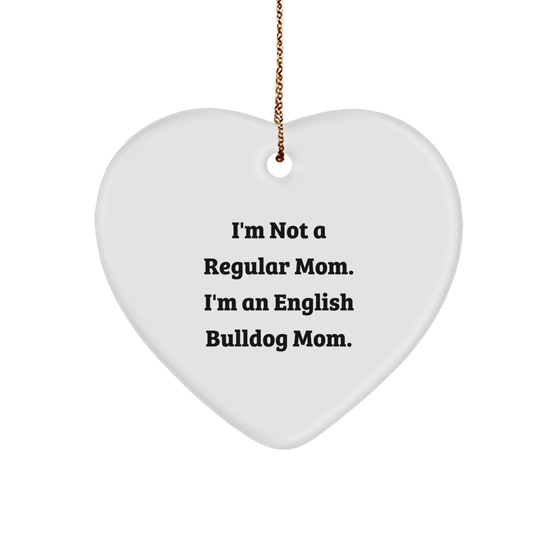 Are you an English Bulldog enthusiast or looking for a unique gift for the English Bulldog mom in your life? This 'I'm Not A Regular Mom. I'm An English Bulldog Mom.' heart ornament is the perfect choice!