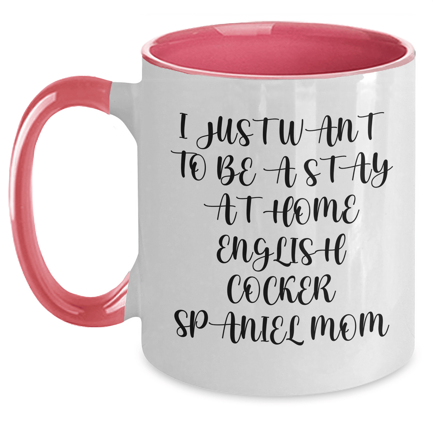 - Make a delightful addition to your morning routine with this 'I Just Want To Be A Stay At Home English Cocker Spaniel Mom' Two Tone Coffee Mug, perfect for English Cocker Spaniel Dog lovers who want to express their affection for their furry friends. The unique design and vibrant colors will brighten up your day, and the 11oz capacity ensures you can enjoy your favorite beverage without having to refill too often.