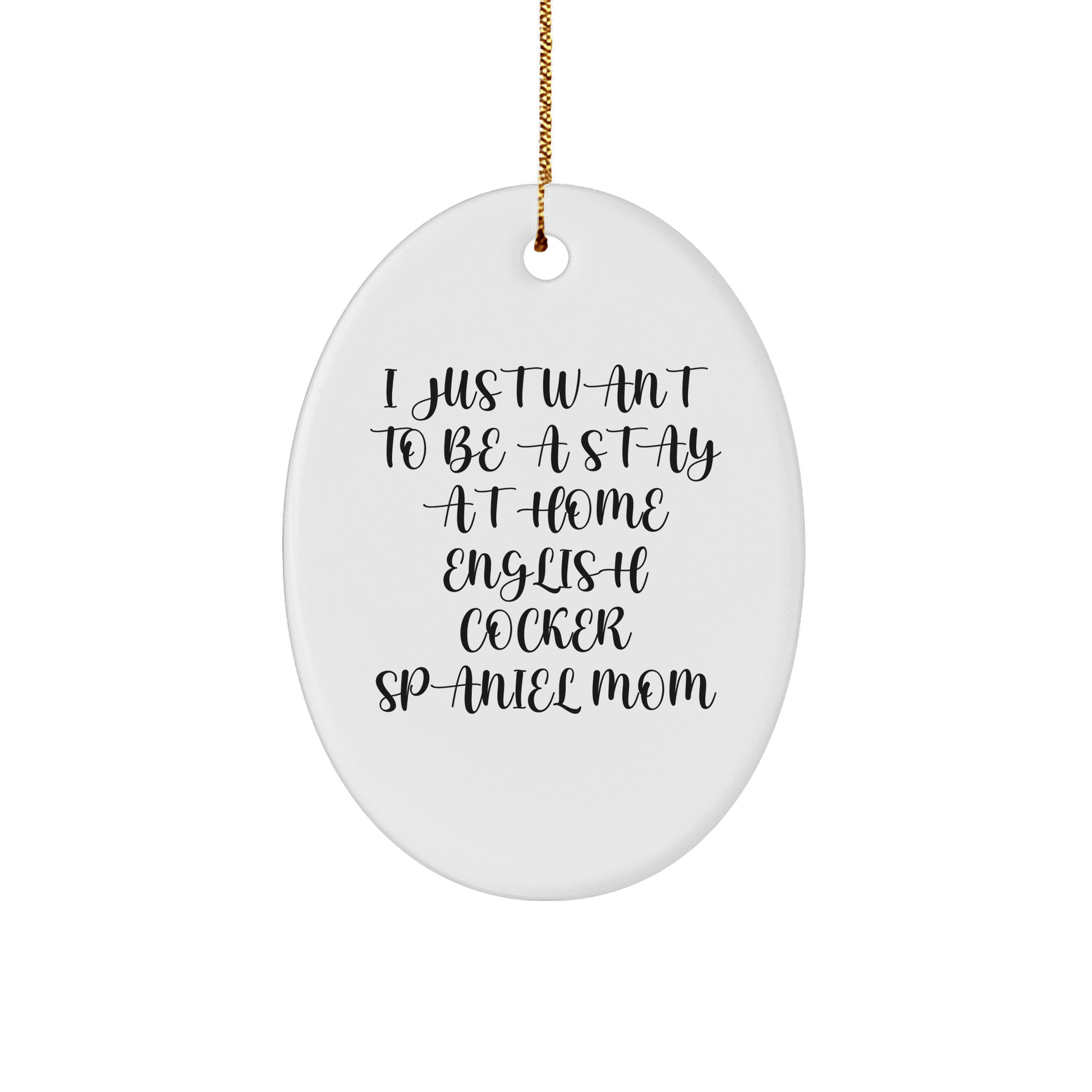 - Discover the ideal gift for the English Cocker Spaniel Dog lover in your life! This 'I Just Want To Be A Stay At Home English Cocker Spaniel Mom' oval ornament is crafted from sturdy MDF with a high-gloss plastic finish, ensuring long-lasting designs and vibrant colors. A great choice for households with children or pets, it's lightweight and resistant to breaking.
