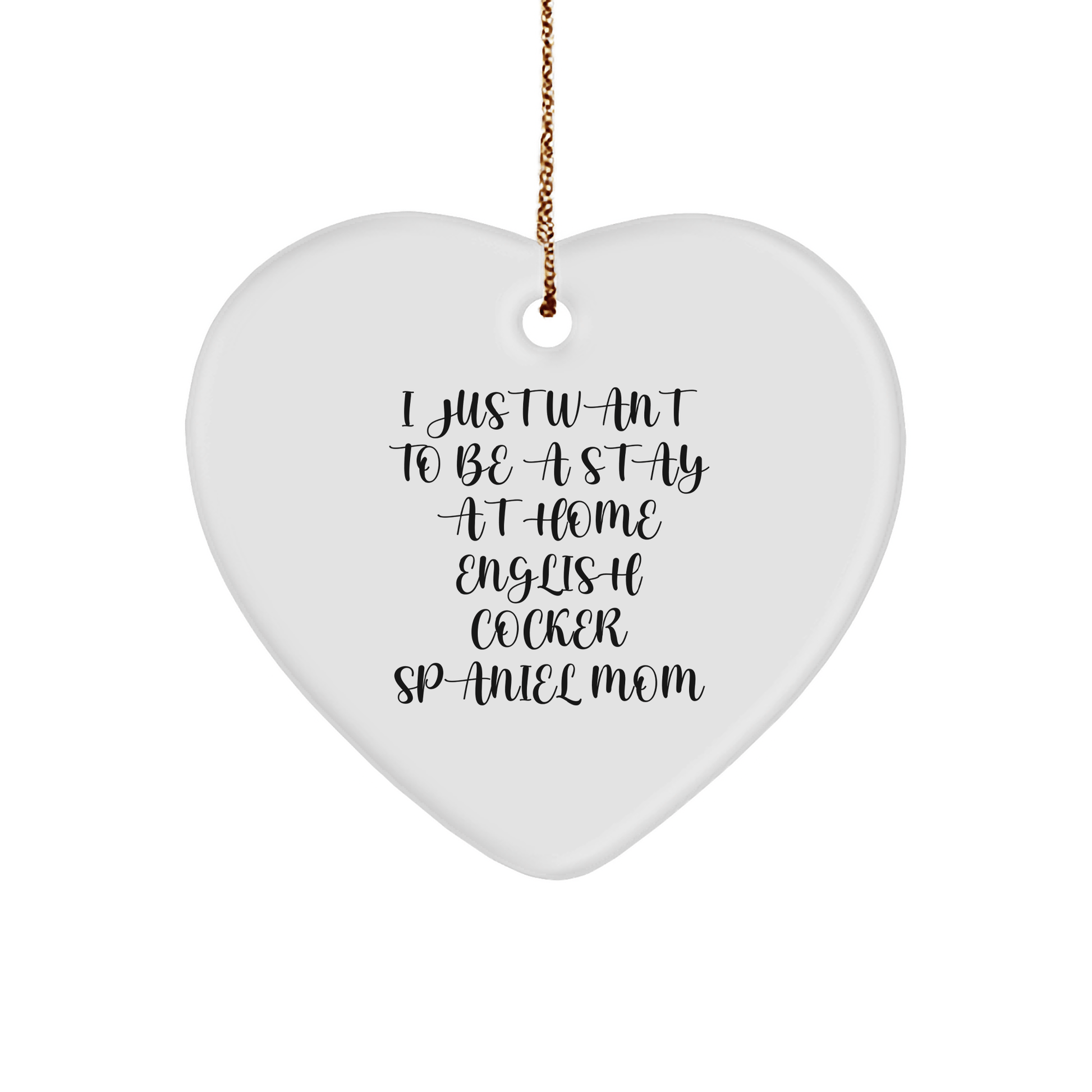 - Bring home the joy of English Cocker Spaniel love with our heart-shaped ornament, featuring the endearing quote 'I Just Want To Be A Stay At Home English Cocker Spaniel Mom'. Perfect for English Cocker Spaniel dog owners and lovers, this ornament is a thoughtful gift for any occasion, including Christmas. With its vibrant colors and lightweight design, it's a great choice for households with children or pets.