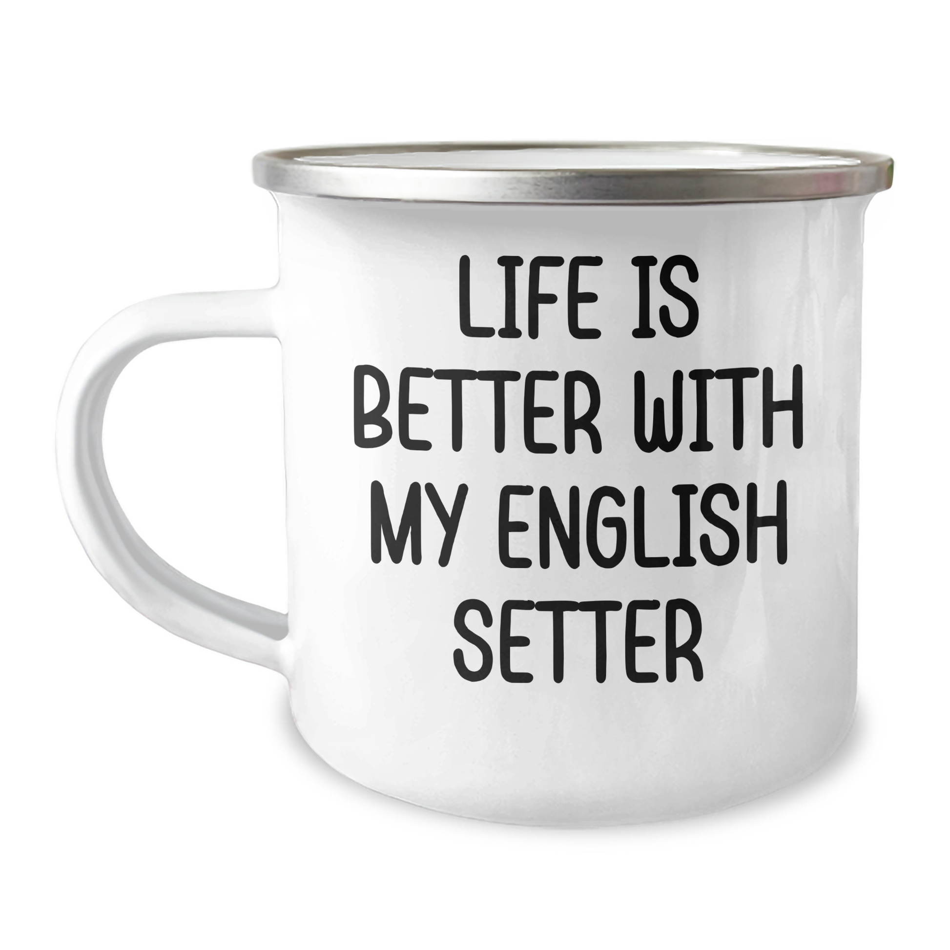 - Make a thoughtful and personalized gift for the English Setter Dog enthusiast in your life with this camping mug, featuring the quote 'Life Is Better With My English Setter' and a 12 oz capacity for hot beverages.