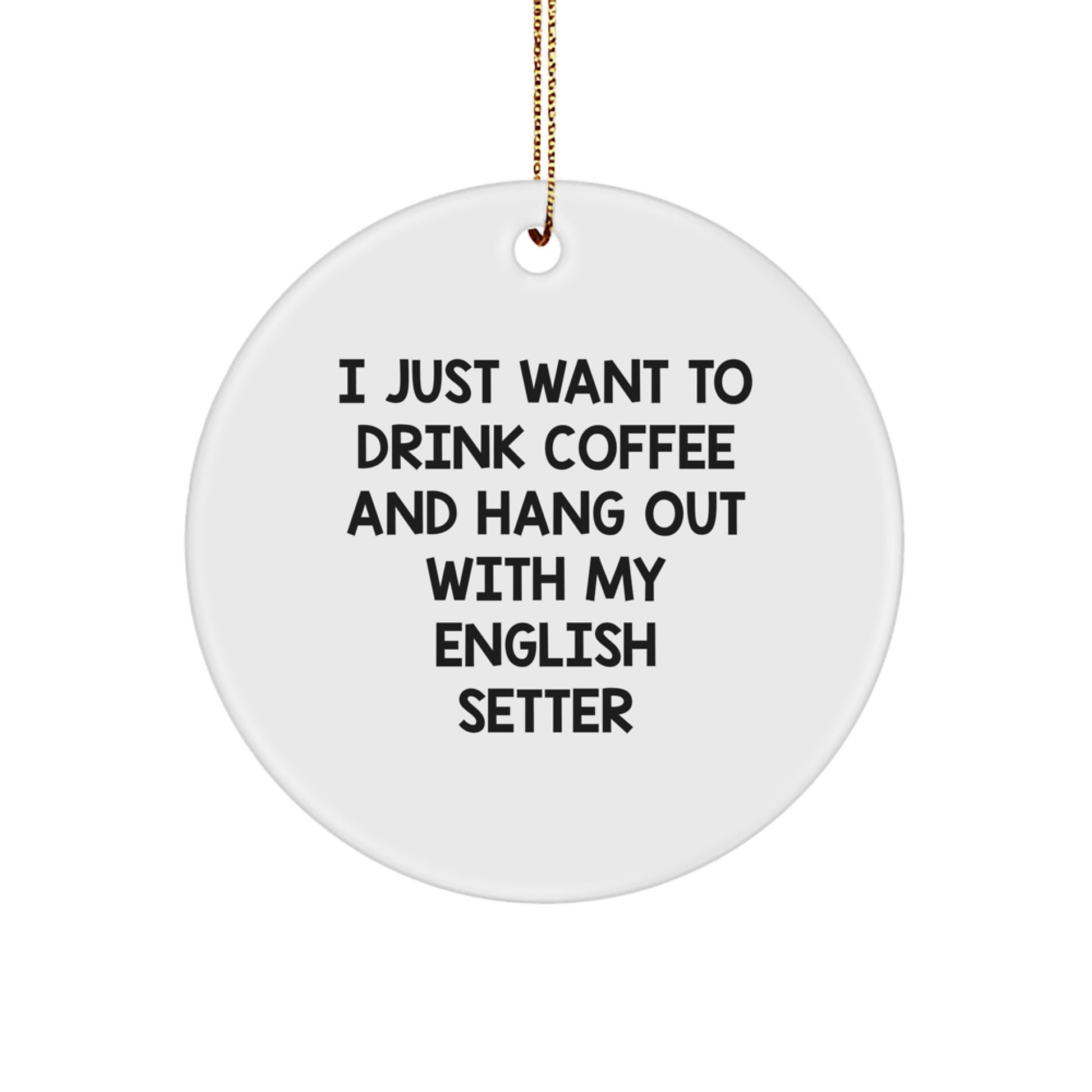 So why settle for a boring, generic gift when you can give something that truly speaks to the heart of an English Setter Dog enthusiast? This 'I Just Want To Drink Coffee' circle ornament is the perfect way to show your appreciation and thoughtfulness. Don't miss out and make this holiday season one to remember!