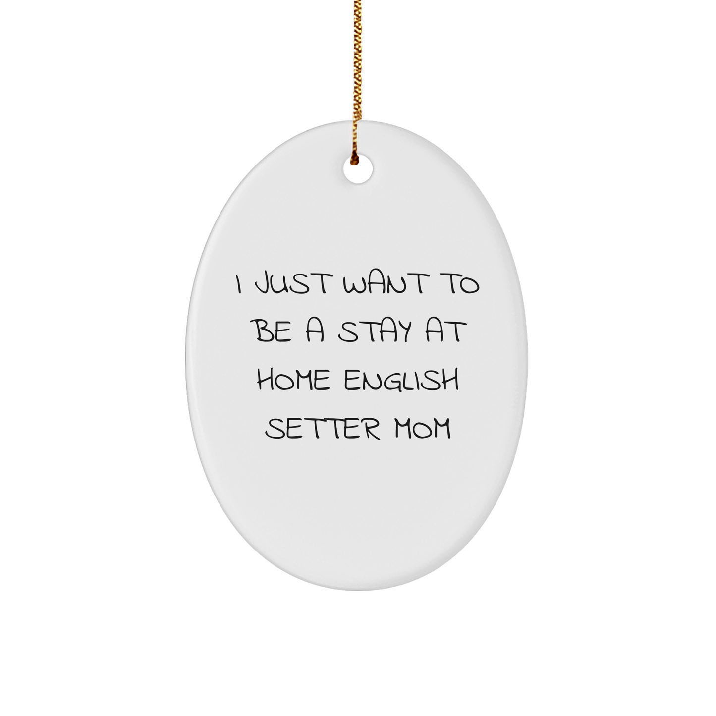 - Bring a smile to any English Setter dog lover's face with this funny oval ornament, featuring the quote 'I Just Want To Be A Stay At Home English Setter Mom'.