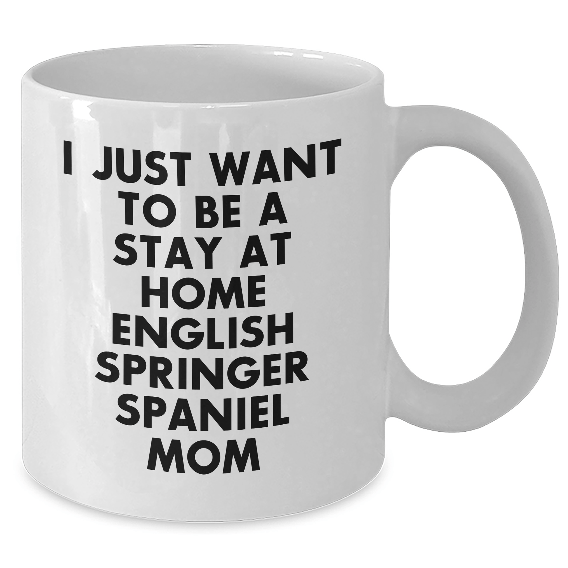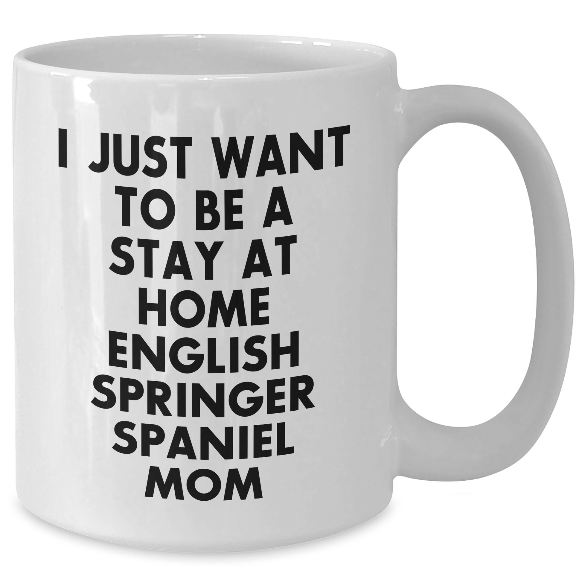 - Make a paw-some gift for the English Springer Spaniel mom in your life with this 'I Just Want To Be A Stay At Home English Springer Spaniel Mom' quote on a white coffee mug, available in 11oz or 15oz capacity, perfect for their daily cup of coffee or tea.