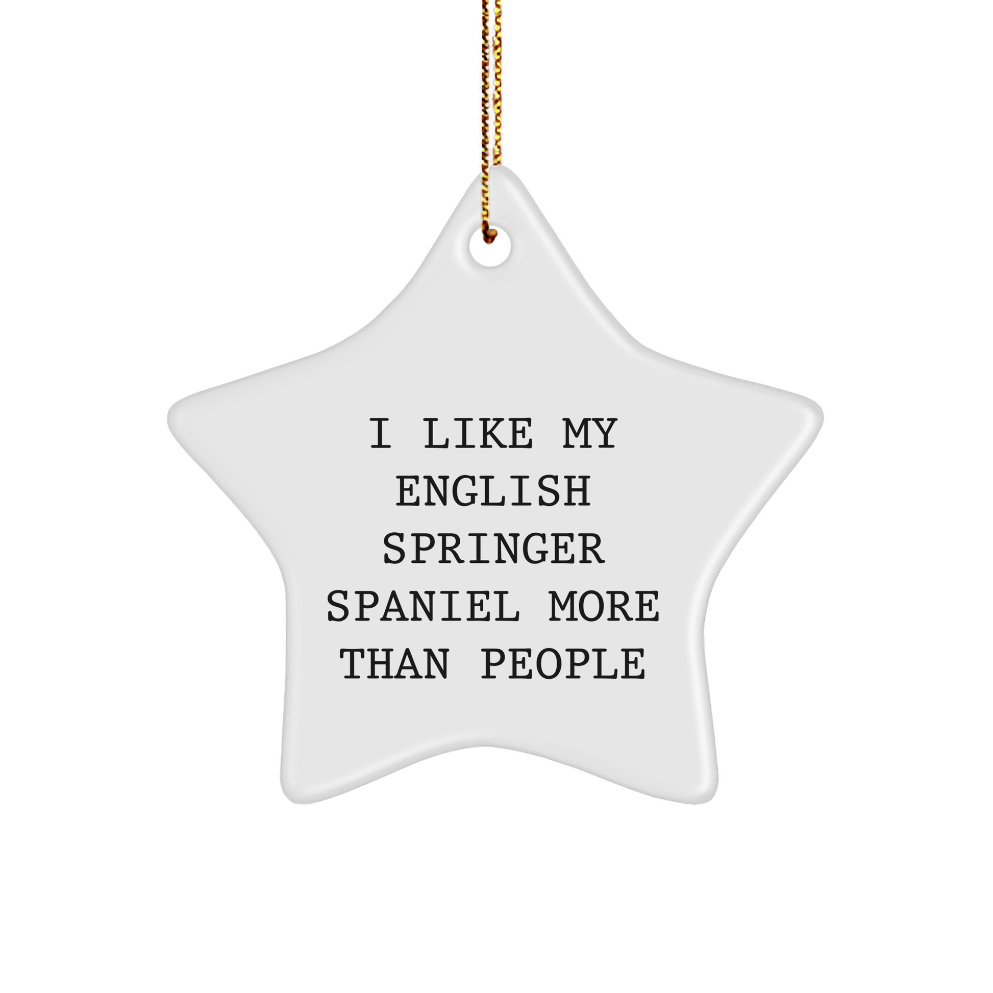 - Make this Christmas one to remember with your English Springer Spaniel Dog by your side - order your I Like My English Springer Spaniel More Than People Star Ornament today and spread the love!